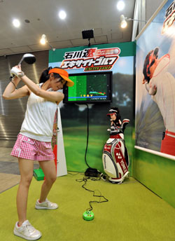 The award winners attracted a lot of visitors Thursday, especially in the boys category. For instance, many people tried the virtual golf toy Ryo Ishikawa Excite Golf, produced by Epoch Co. in collaboration from the popular professional golfer.