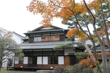 A three-story structure next to the residence is thought to have once been used to store silk for Echigoya, a fabric enterprise the Mitsui zaibatsu evolved from. The phrase "Built in year 7, Meiji Era," can be seen written on a roof beam on the third floor, suggesting the storehouse was one that once stood in the Nihonbashi district and was built in 1874 by Kisuke Shimizu, founder of Shimizu Corp.