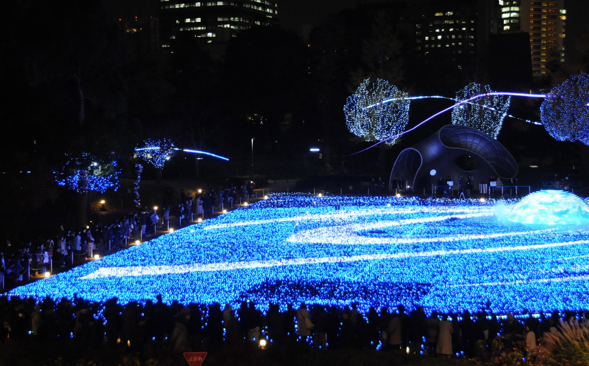 Japan's first large outdoor light display was strung up in 1903, when 6,700 bulbs adorned buildings as part of an industrial technology exhibition that ran from March 1 to July 31 in Osaka, according to the Japan Electric Lamp Manufacturers Association.