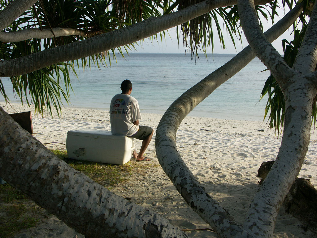 "The sea is too hot. The ice is melting. The water is rising. The coral dies, the fish die, the people die," said Mentil Laik, a canoe-builder who speaks limited English. Asked why, he pointed to the sky. "Ozone," he said. "Too many holes."