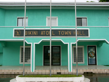 Many descendants of Bikini evacuees now live on remote Kili Atoll. Bikini's city hall is a prominent building in Majuro, 850 km southeast of Bikini. Bikinians remain proud of their 2,000-year old heritage, and many hope to return to their ancestral homeland someday. But they still haven't won sufficient funding to decontaminate their land.