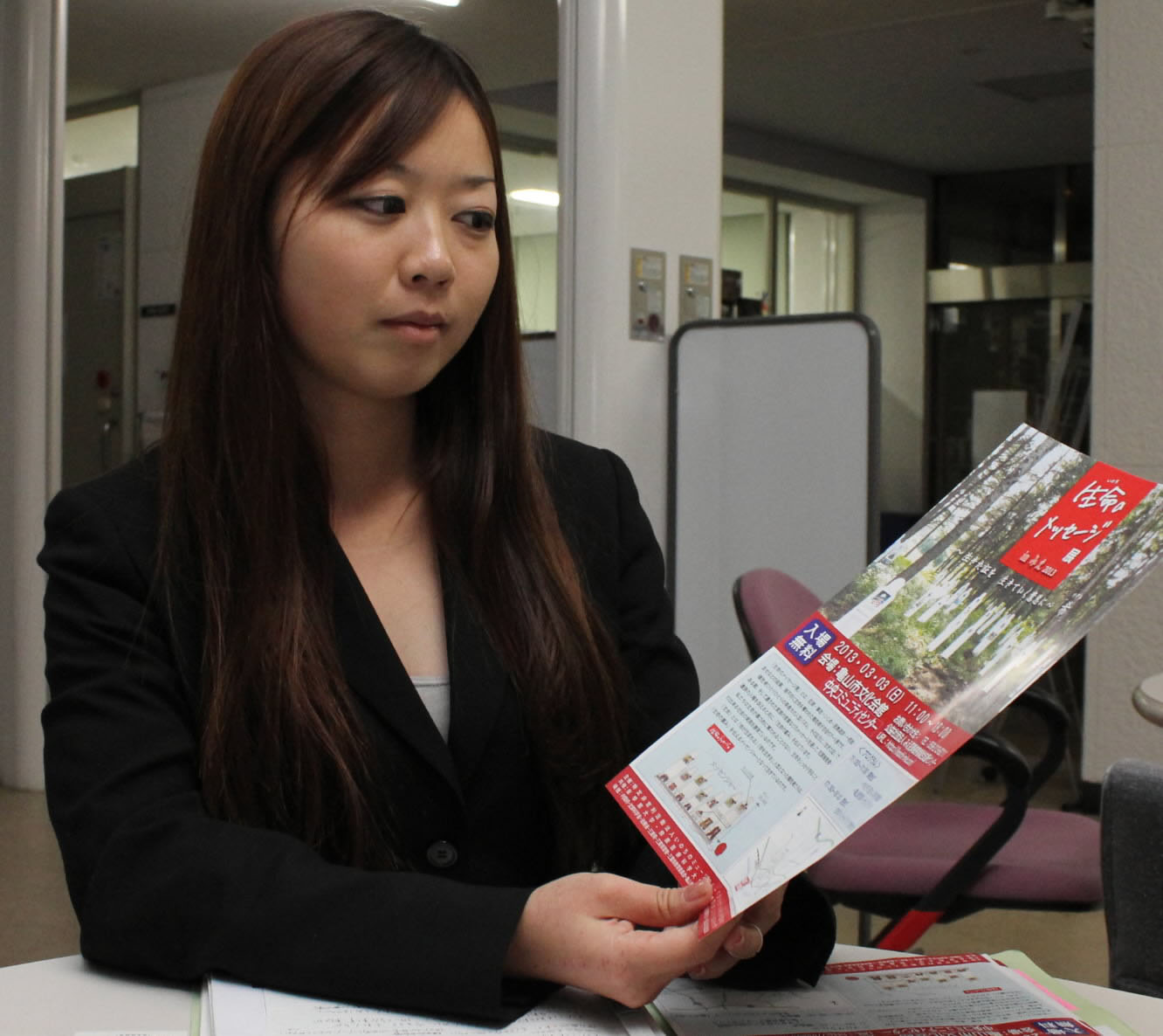 In her freshman year, she got to know the "Inochi no Message Ten" event run by an NPO, and joined the planning committee in her sophomore year.