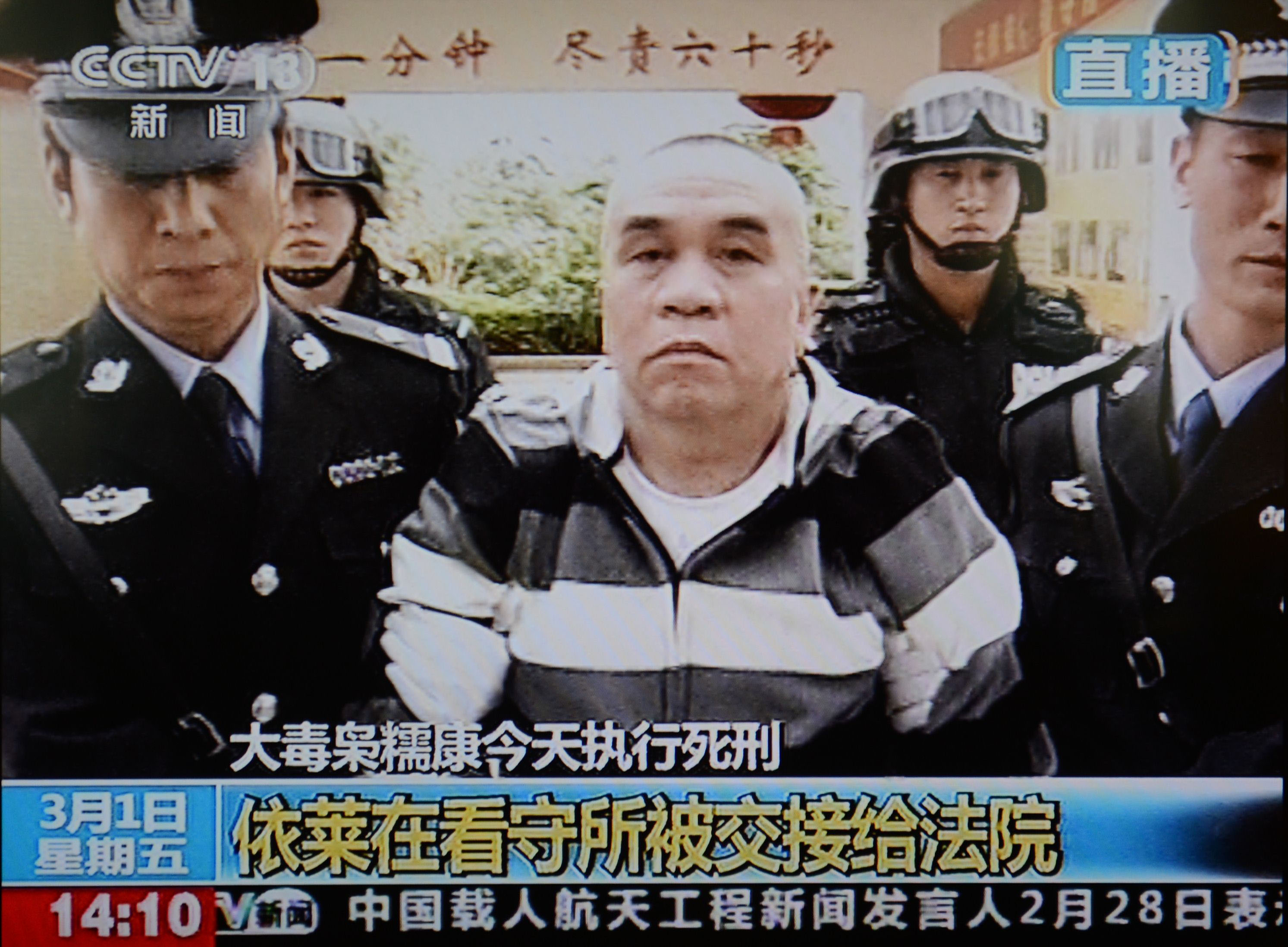 In an unusual action that quickly sparked debate online, Chinese authorities showed a live broadcast Friday of four foreign drug smugglers in their last hours before execution for killing 13 fishermen.