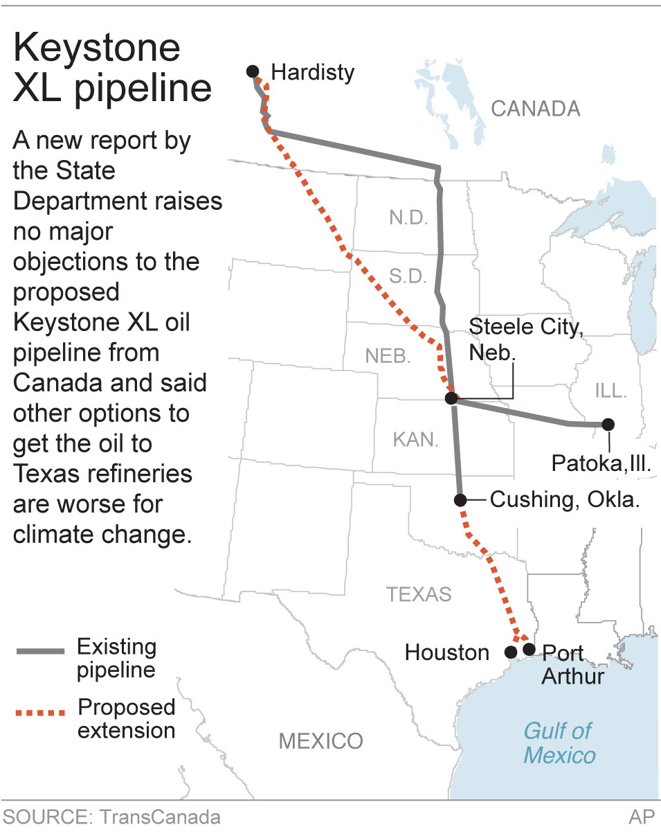 But the detailed environmental report — almost 2,000 pages long — also questions one of the strongest arguments for the pipeline, by suggesting that the U.S. can meet its energy needs without it. The growth in rail transport of oil from western Canada and the Bakken Formation on the Great Plains and other pipelines, according to the analysis, could meet the country's energy needs for the next decade even if the Keystone XL route is never completed.
