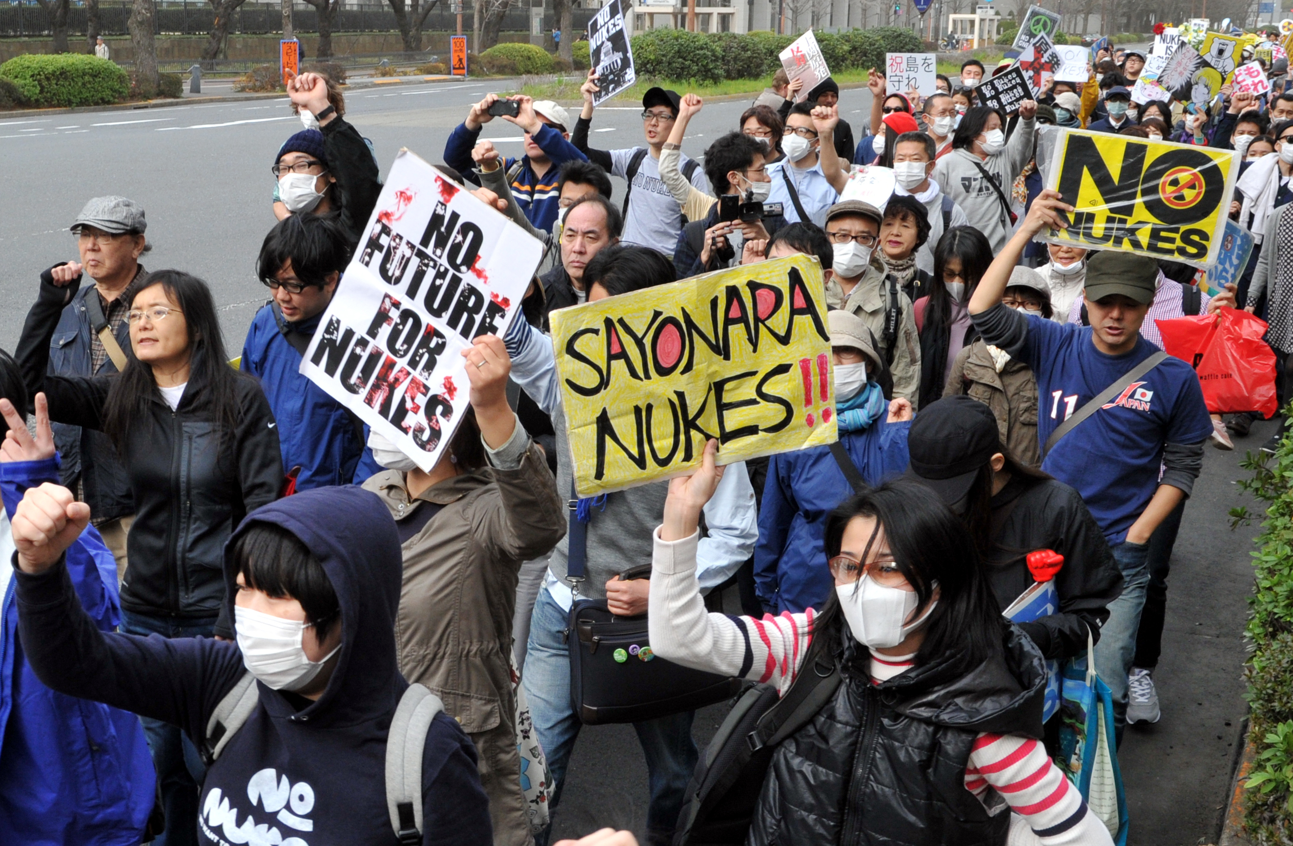 Almost 300 protests and gatherings were staged nationwide over the weekend, a symbolic gesture as the country prepared to commemorate the second anniversary of the March 11, 2011, quake and tsunami that triggered one of the world's worst nuclear crises.