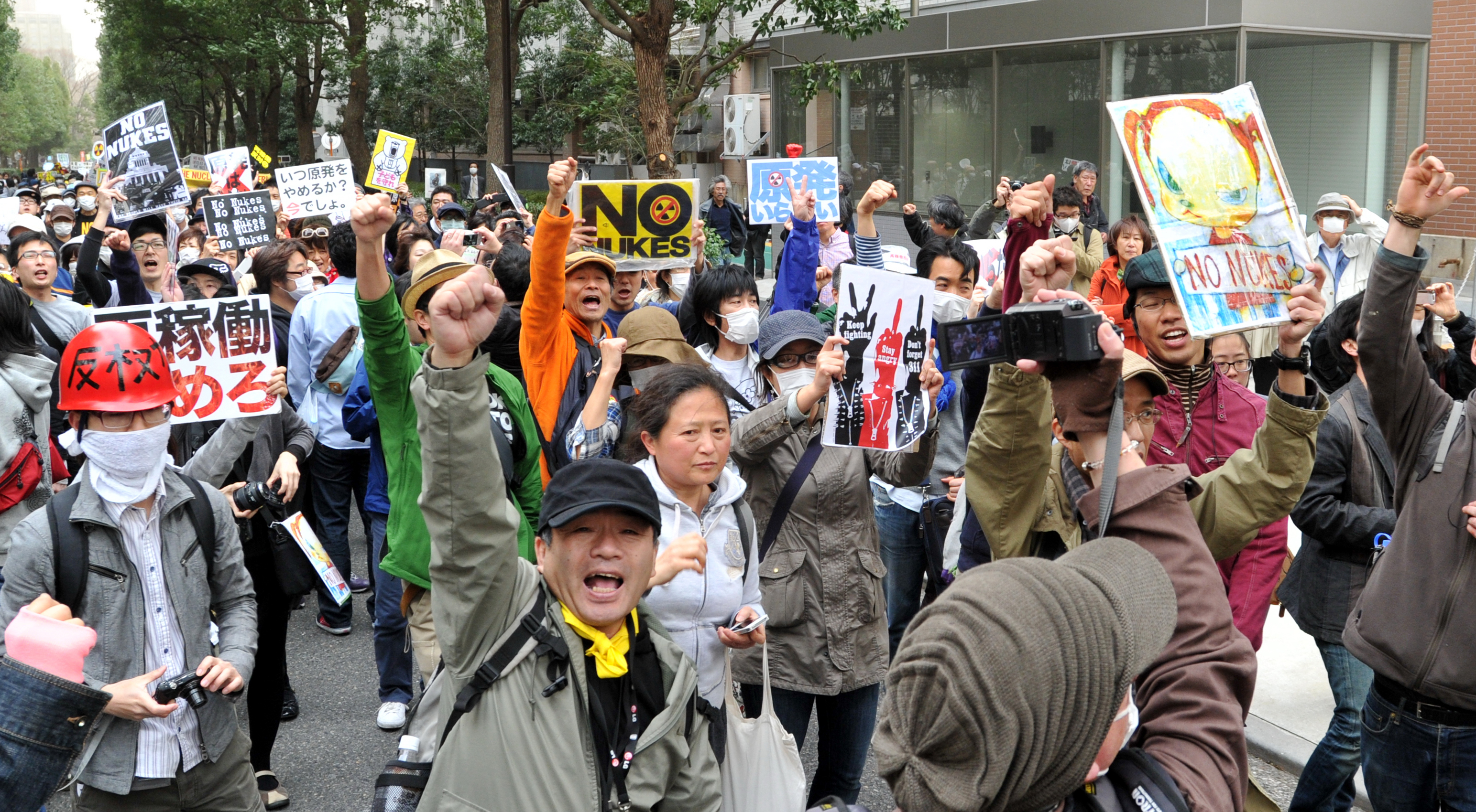 Protesters warned that the crisis at the flooded Fukushima No. 1 power plant is far from over, with almost 150,000 Fukushima Prefecture residents still displaced and no time frame in sight for their return, even two years after the Tokyo Electric Power Co. facility was staggered by three core meltdowns.