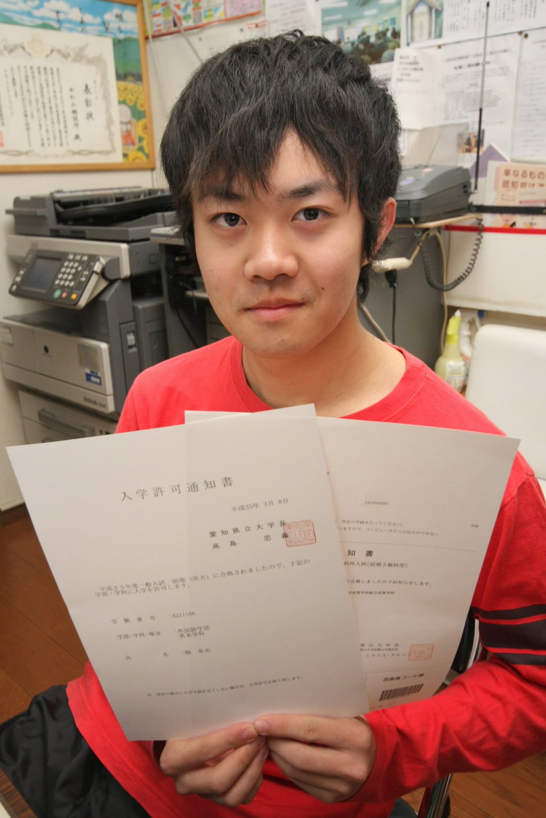 Kusuki received a letter of acceptance from Aichi Prefectural University's School of Foreign Studies on March 8. "I had almost given up so many times," he said with joy.