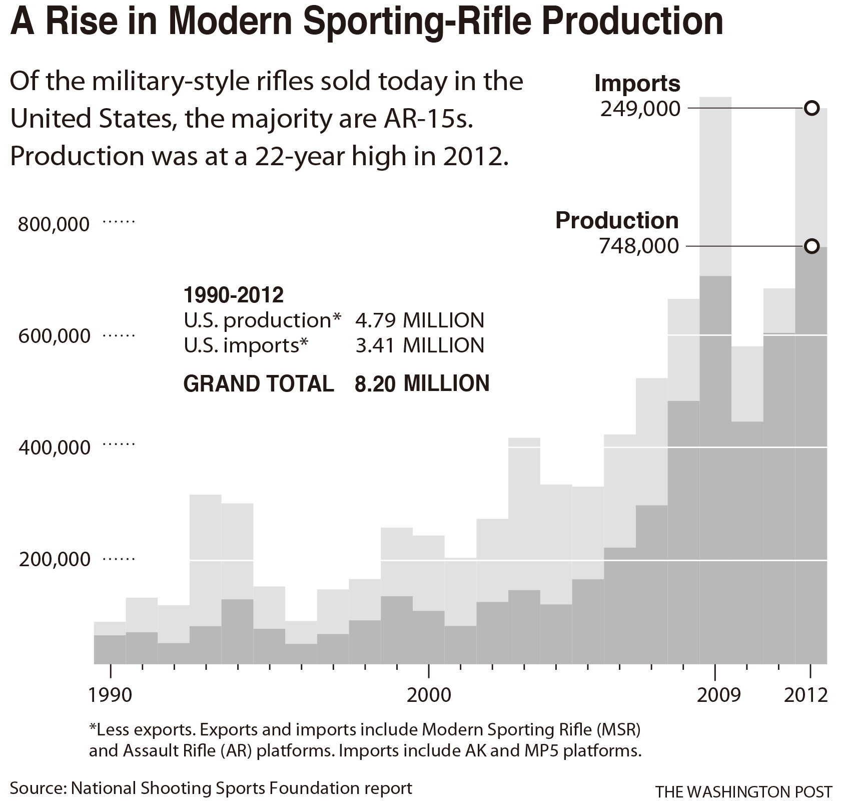 By 2012, nearly 1 million of what gun advocates call "modern sporting rifles" were coming into the U.S. market from foreign and domestic sources in a single year.