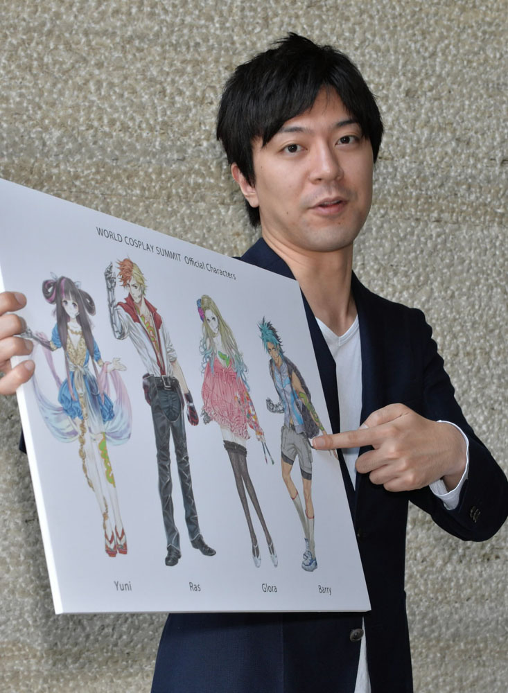 "I want people to do the 'cosplay' (costume play) of the characters I designed," said the 29-year-old illustrator as he unveiled the four unique characters during his recent visit to the Chunichi Shimbun.