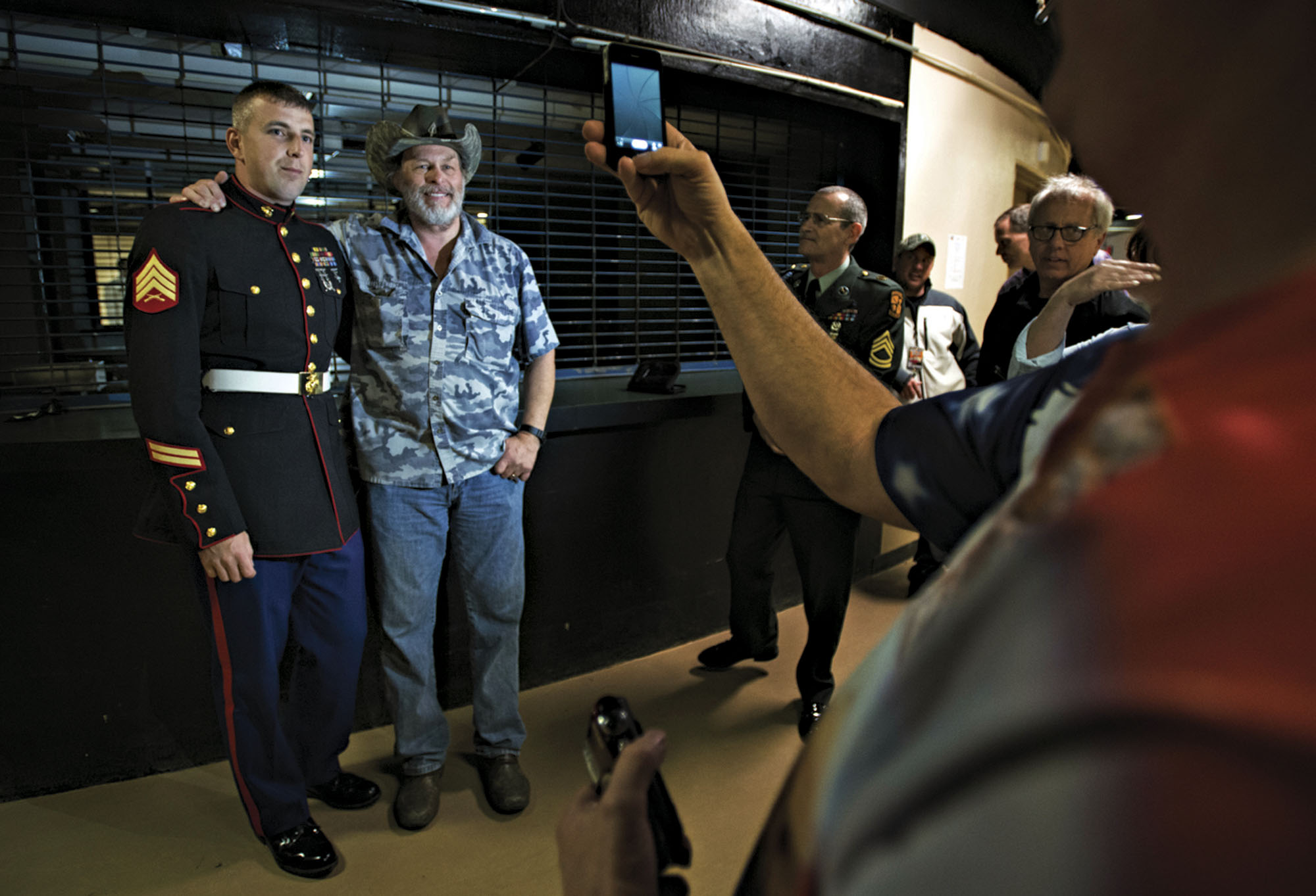 But his energy was unmistakable — and remarkable, considering he had flown in from a gig in Tampa, Florida, the night before and would be winging off within hours to do another in Atlanta that evening. His eyes were as fierce as the pair burning from album covers of the 1970s and '80s. His hands drummed the table expectantly whenever there was a pause in the string of citizens stepping up to thank him, for the music, for "saying it straight" and for "not taking any s—t" from the liberals, the media, the government.
