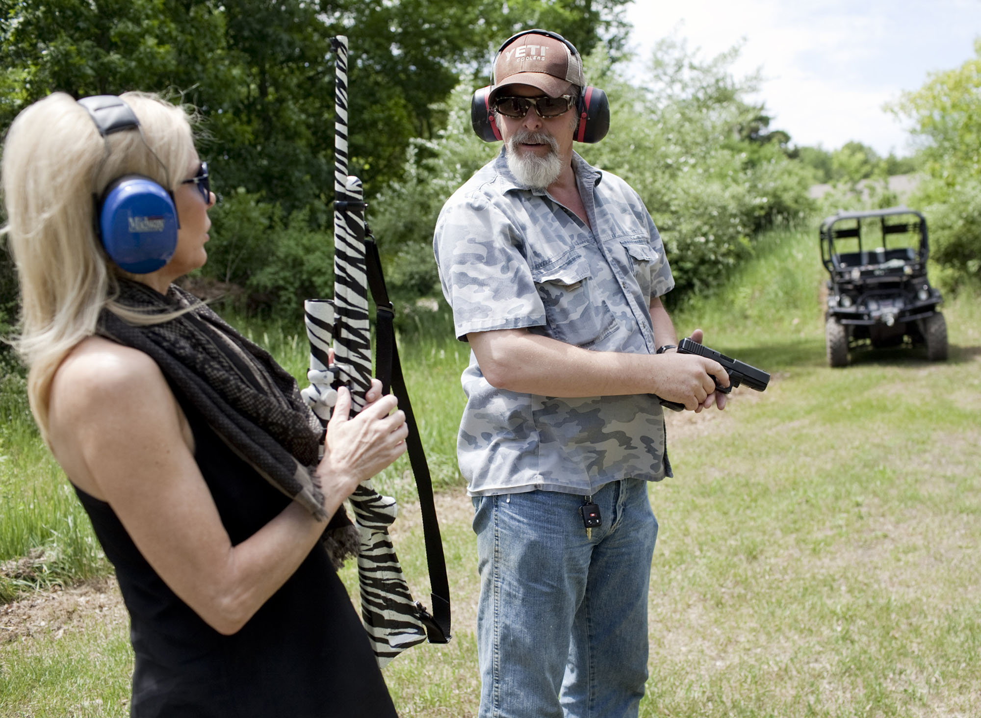 After lunch, Nugent helped Boyette shoulder a rifle for her first time on a shooting range. Both she and Savarese nailed the target. "It's genetic," Nugent crowed.