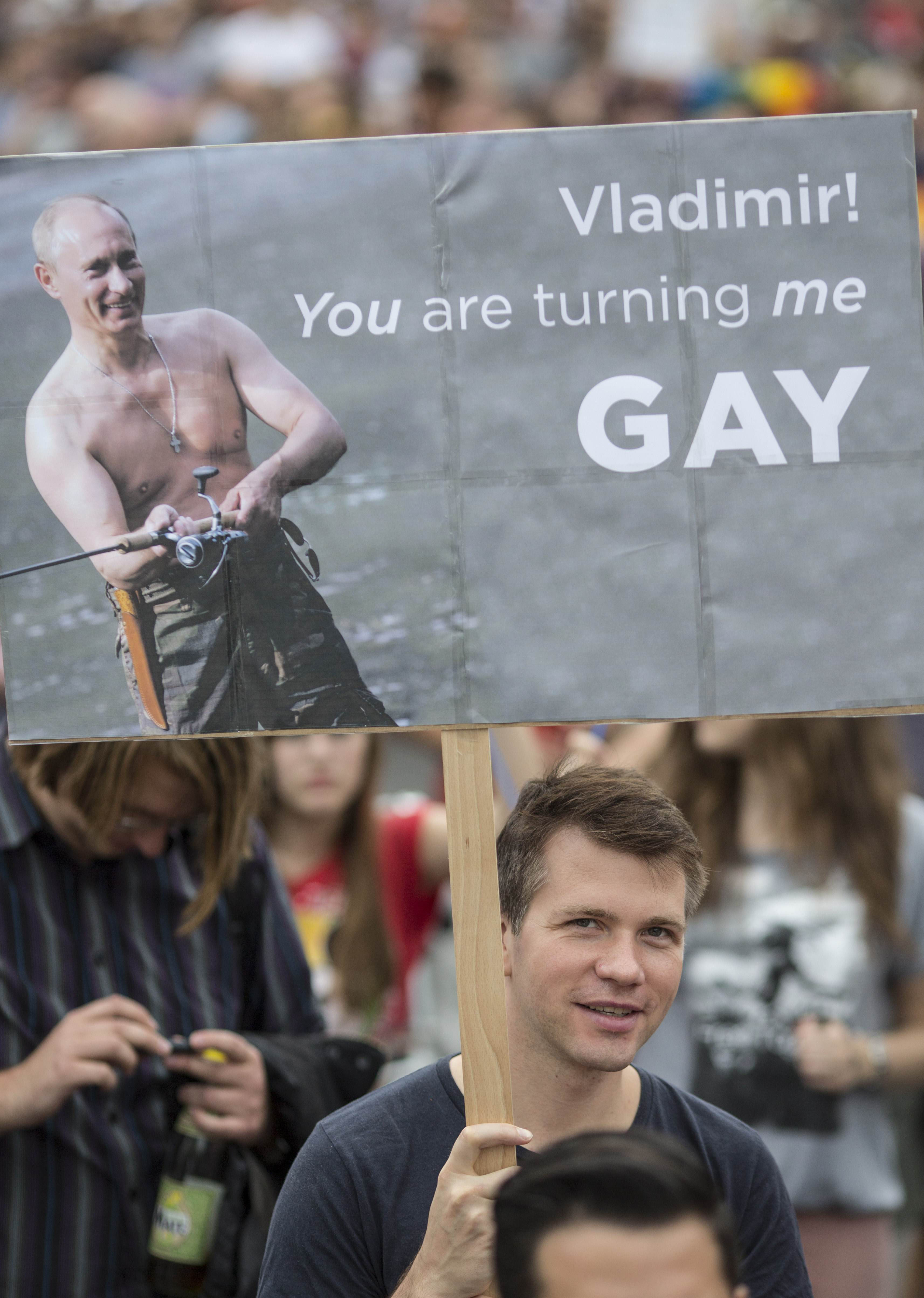 President Vladimir Putin signed the national law July 1. Even before that, four cities had passed their own versions. Earlier this year, Lena Klimova, a 25-year-old Internet journalist from Yekaterinburg, wrote an article about the debate, challenging the parliamentarian's assertions that homosexuality was a perversion.