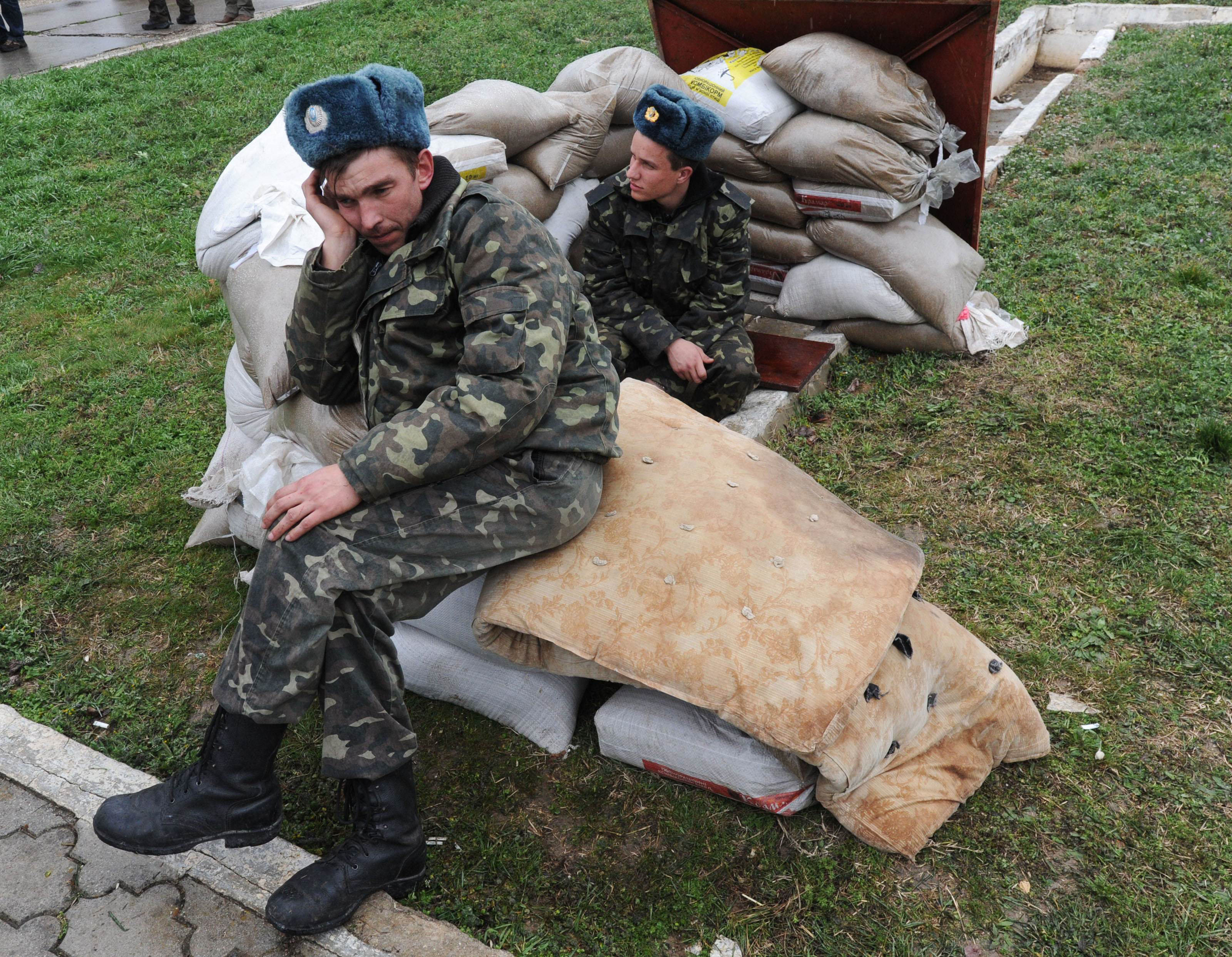 There is frustration on the bases at Kiev's failure to take more decisive action. A Ukrainian military source in Sevastopol said: "There's a feeling that in Kiev they are paralyzed: they don't want to believe that this is happening, and they just don't know what to do. They are hoping they will wake up and find this will all have gone away — that there will be a miracle. They are not doing anything." He added: "Can you imagine if there was just one American soldier stranded somewhere and being assaulted by enemies? The U.S. government would mount a massive campaign to save him. We have thousands of soldiers stranded and they have been abandoned by our government, completely abandoned."