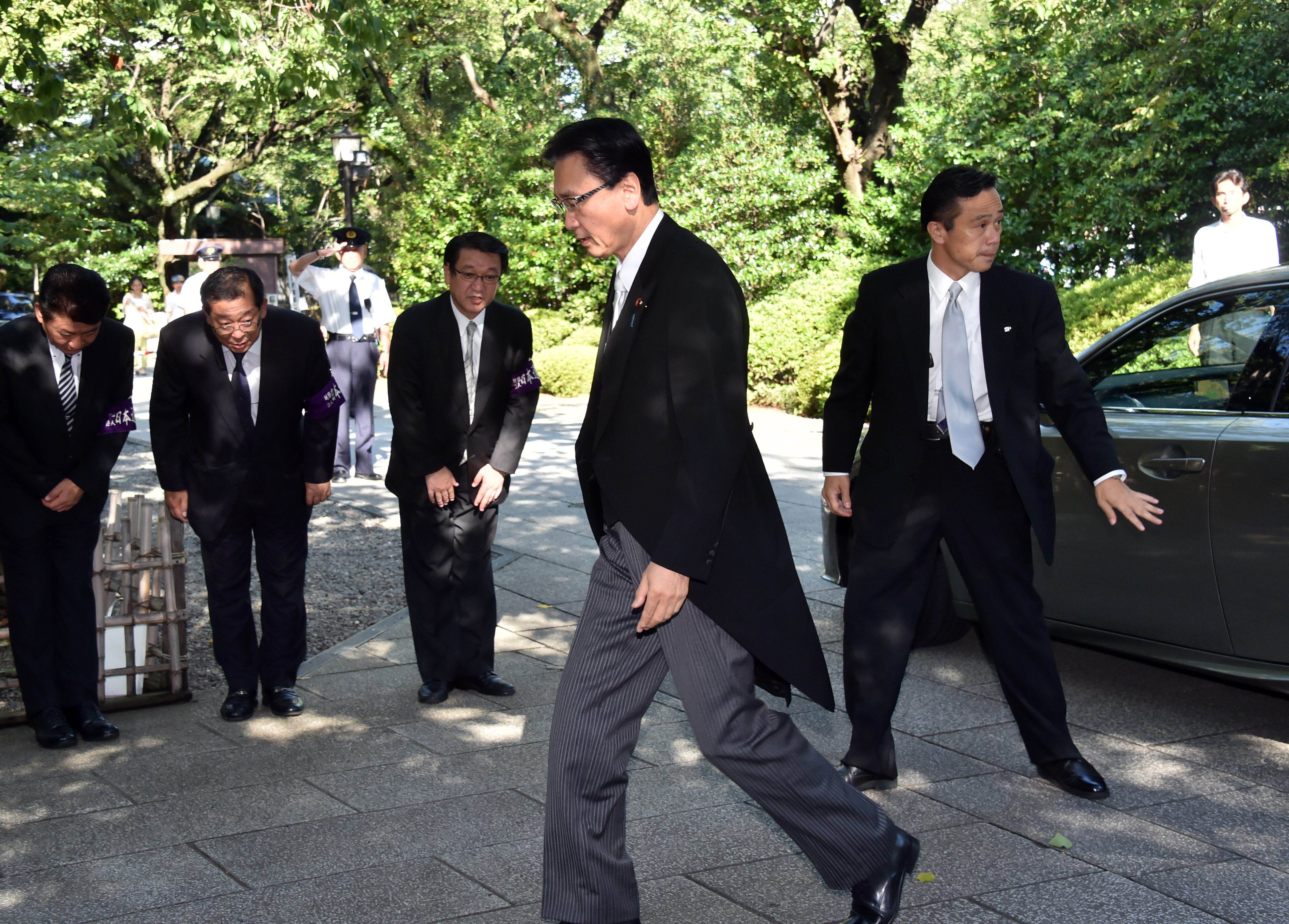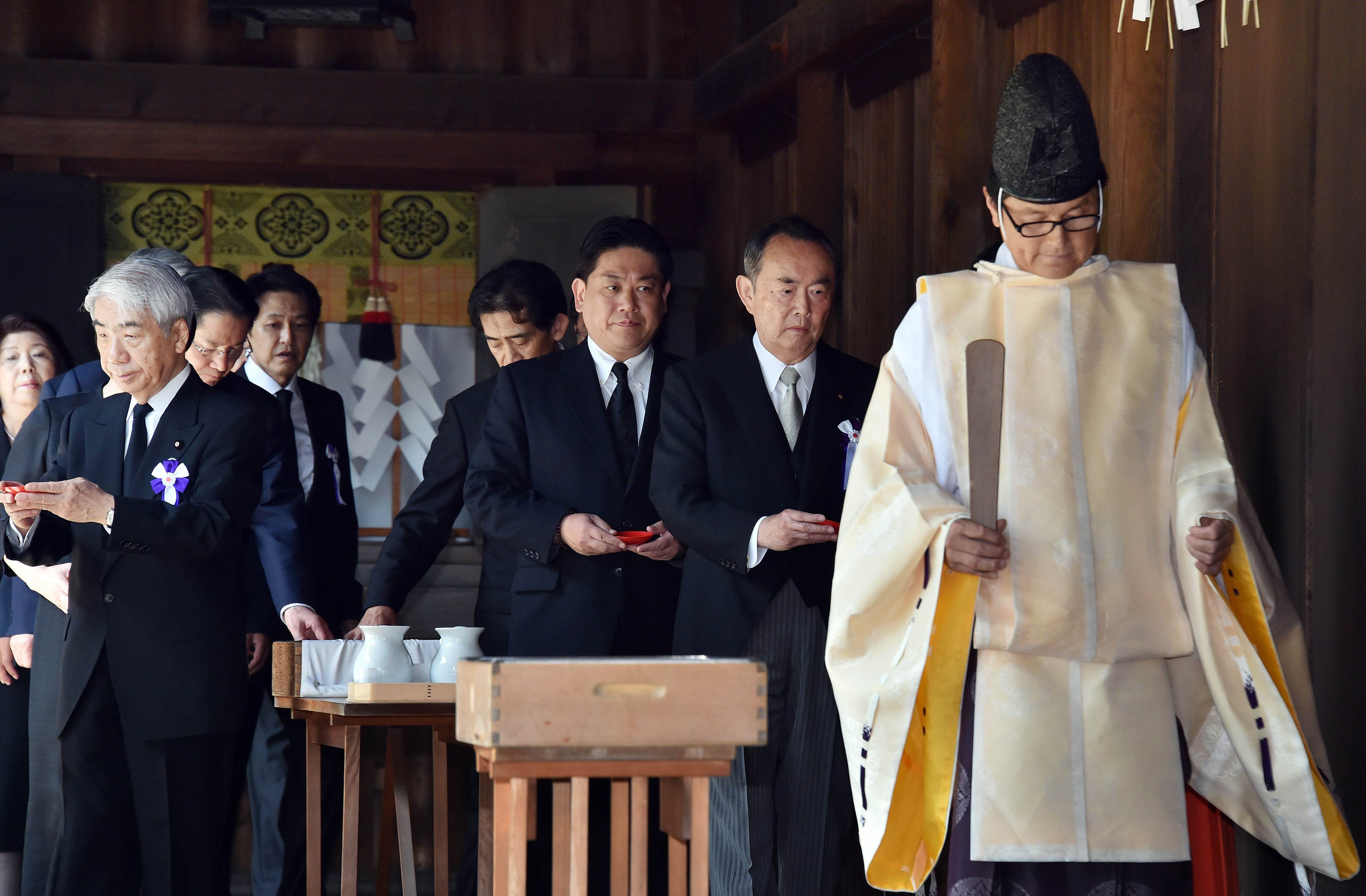The three ministers — internal affairs minister Yoshitaka Shindo and Keiji Furuya, chairman of the National Public Safety Commission, and administrative reform minister Tomomi Inada — stressed that they went to the shrine in Tokyo as private citizens, not government officials.