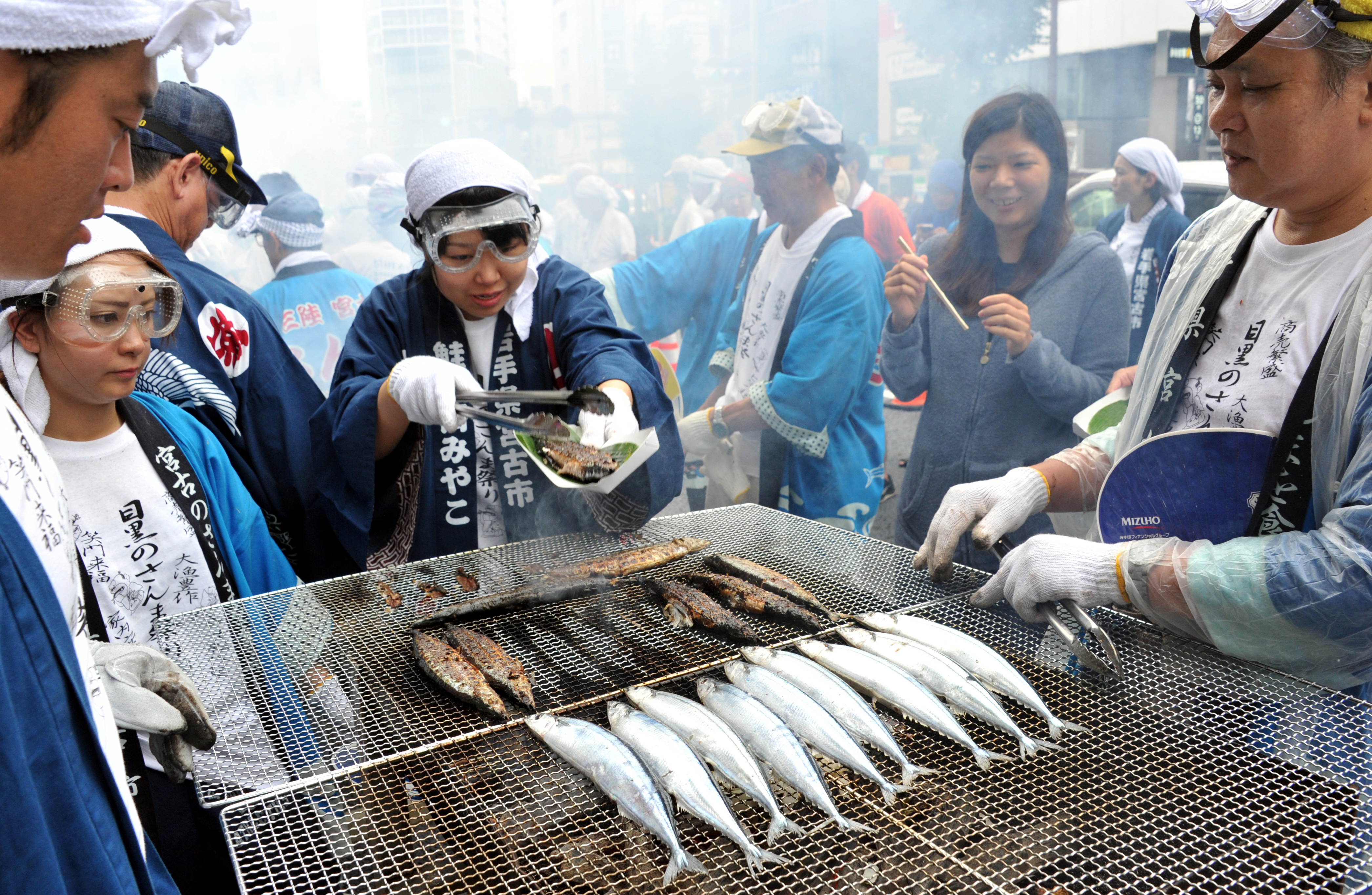 Centuries later, Meguro, now part of central Tokyo, is still famous for saury. Last month, 7,000 saury caught in the Pacific off Iwate Prefecture were shipped in for the annual Meguro saury festival, which sees dozens of vendors grilling the fish over charcoal briquets to serve to visitors for free.