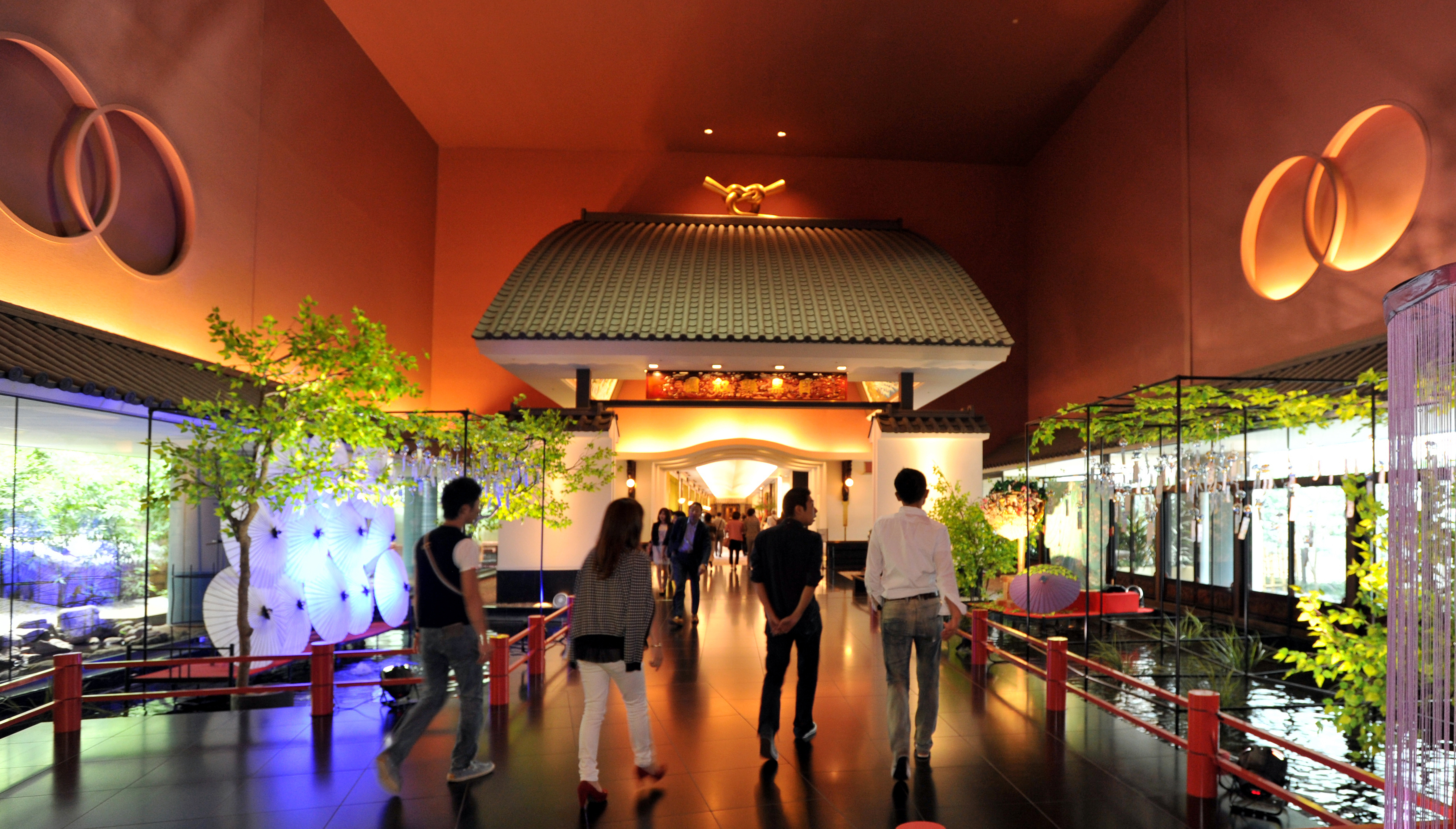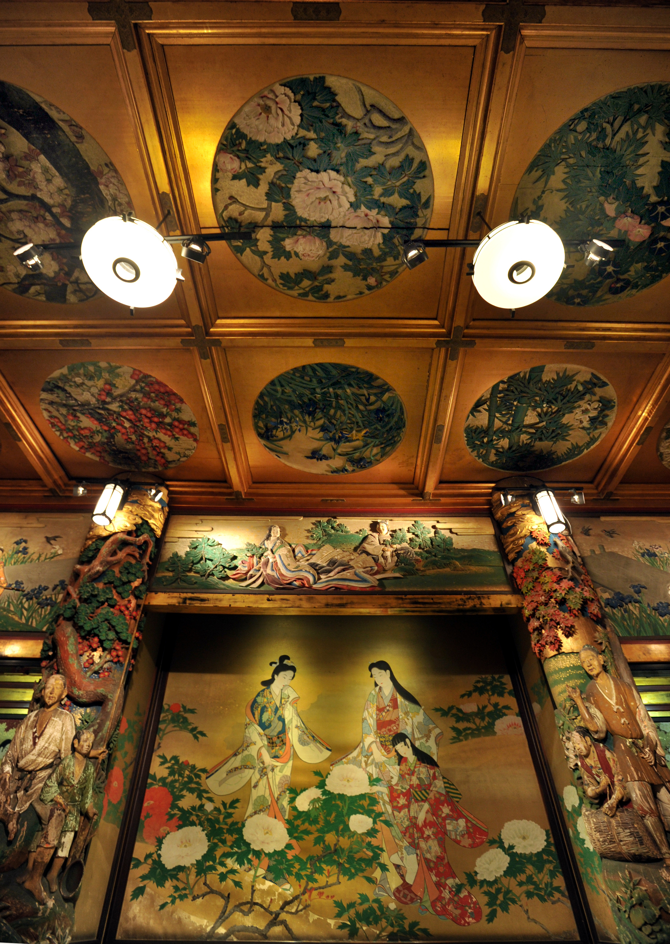 The owner founded the building as a first-class Japanese restaurant, but later added an annex with banquet rooms, guest rooms, a shrine, church and photo studio to create an "all-in-one" hall.