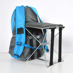 The padded back of the bag can be converted, or pulled out completely and assembled as a foldable chair, providing users with the option of sitting anywhere, anytime.