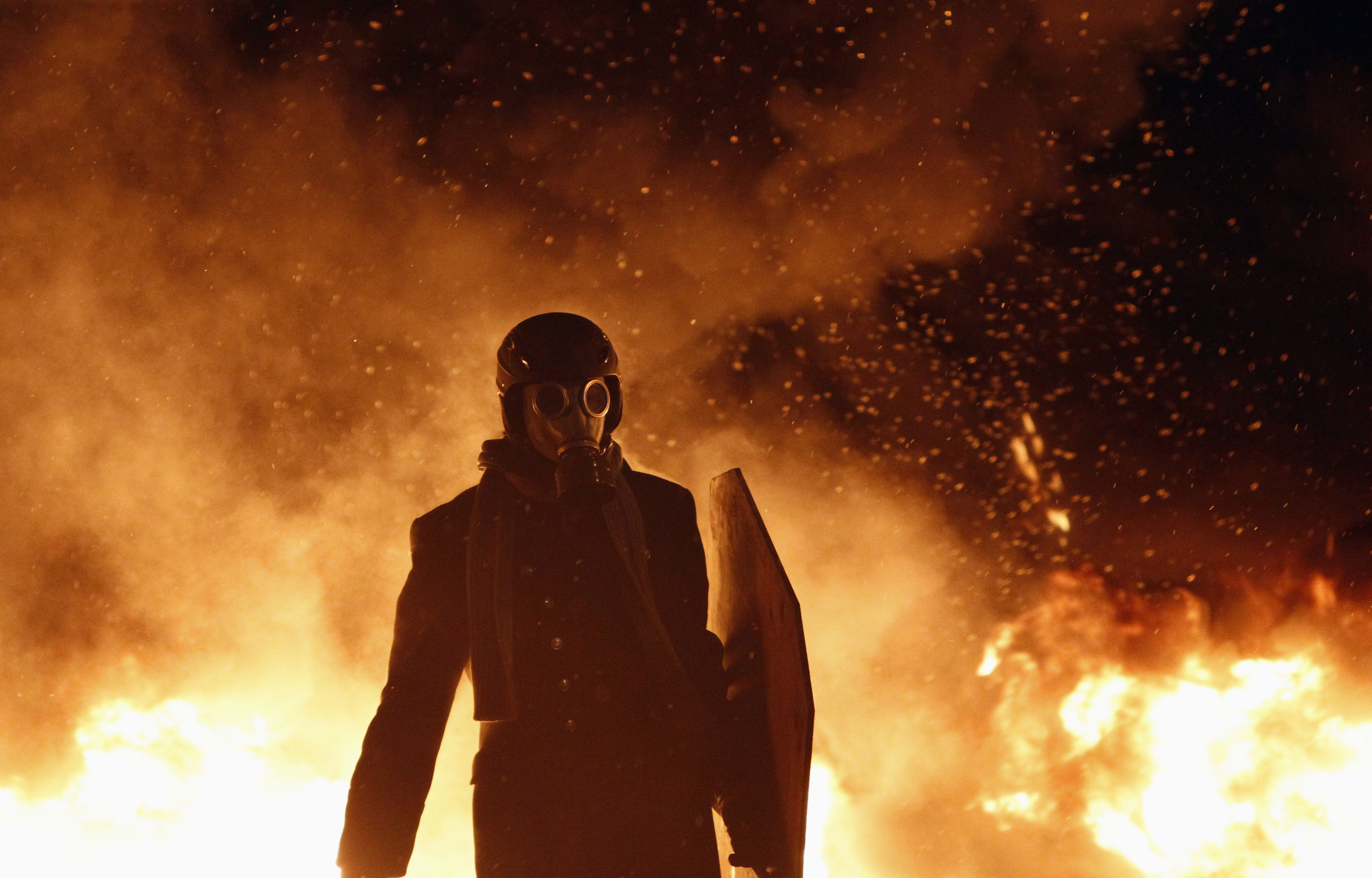 A pro-European protester wears a gas mask during street violence in Kiev, Ukraine, on Jan. 23. | REUTERS2.Revolution in Ukraine: Protesters take control of Kiev following President Viktor Yanukovych's 2013 decision to abort an agreement with the EU in favor of pursuing closer ties with Russia. A heavy-handed crackdown leads to the deaths of dozens of demonstrators, the ouster of Yanukovych and an ongoing conflict with pro-Russian separatists in the country's restive east.