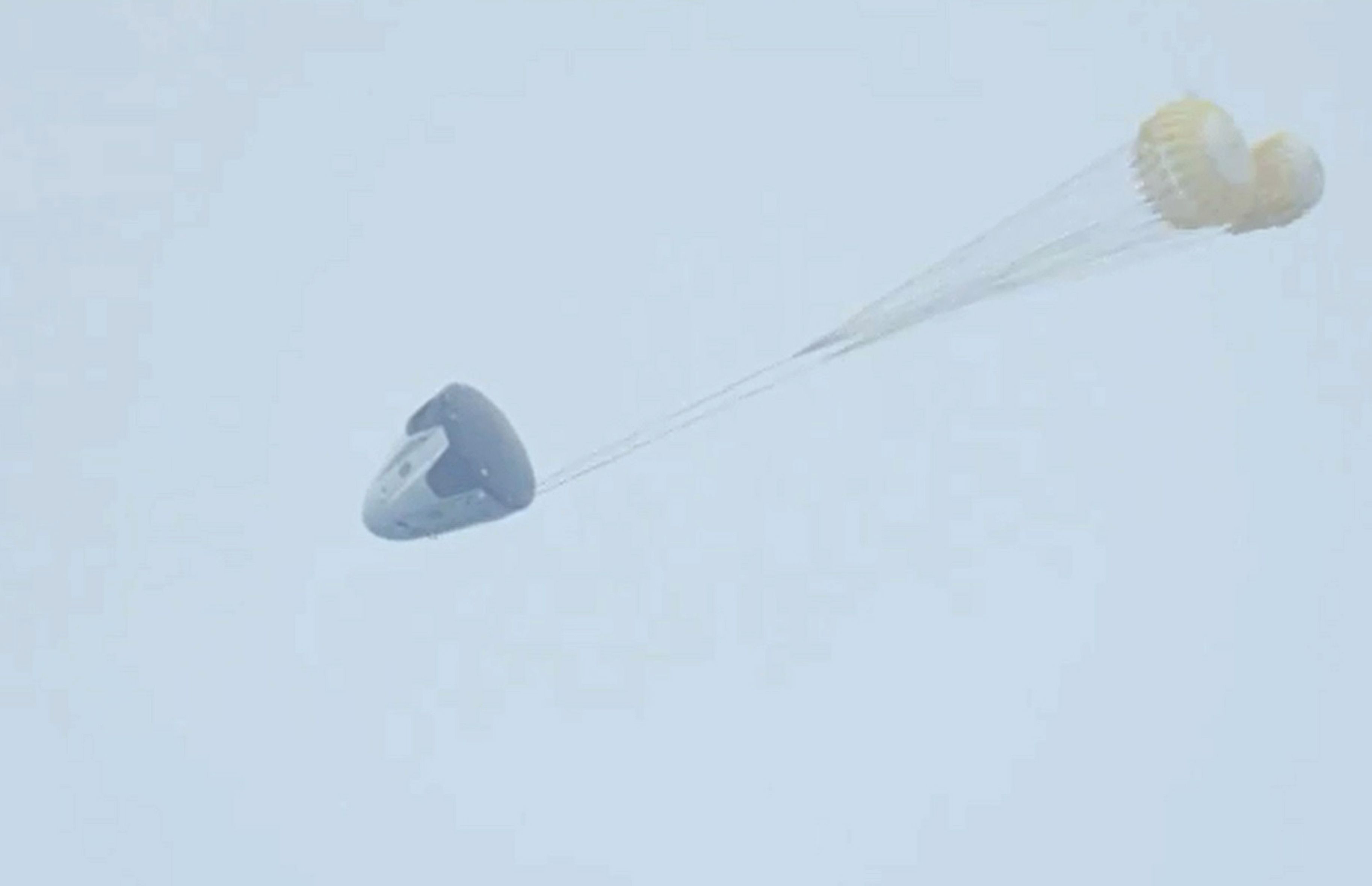 No astronauts were aboard the heavily instrumented Dragon capsule that flew Wednesday, though a crash dummy was strapped into a seat in the crew cabin. Musk said the capsule reached a peak speed of 345 mph (555 kph).