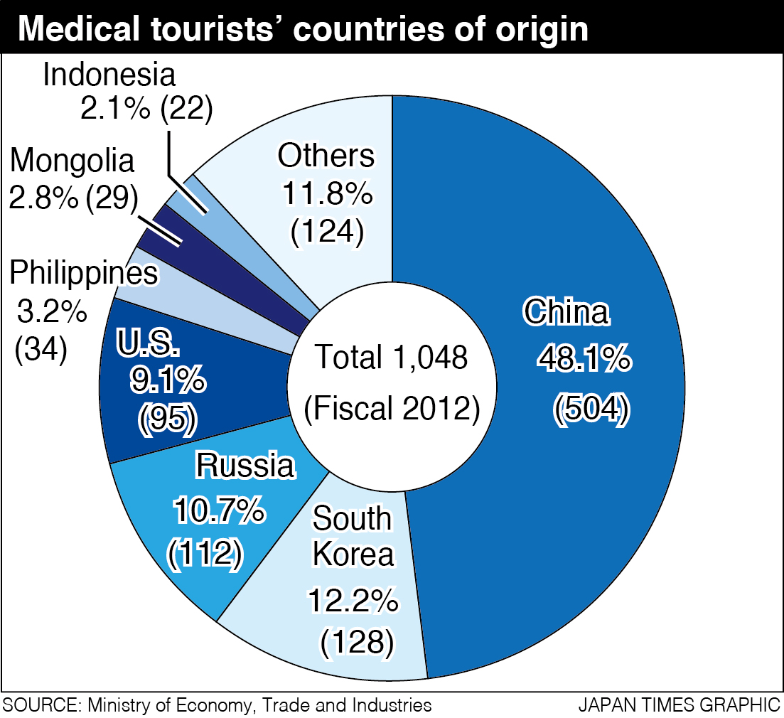 Within a year or so, the government will also create a list of hospitals that are willing to accept medical tourists from abroad. Some 300 hospitals in Japan have already expressed interest in being accredited as what has been tentatively called the "Japan International Hospital," Fujimoto said.
