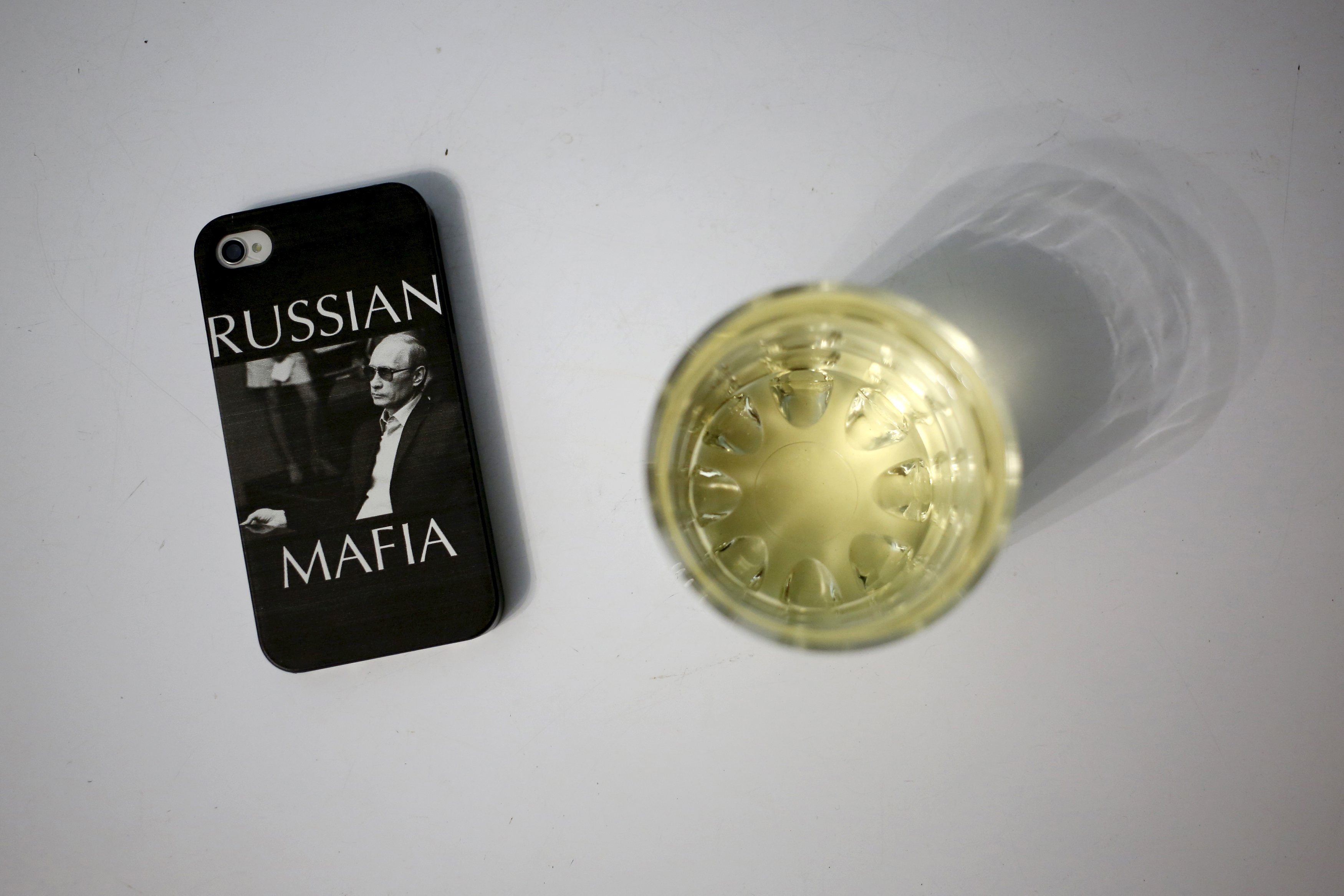 Another seems to want to throw the West's criticism of Putin's methods back in its face. It simply reads, in English, "Russian Mafia."