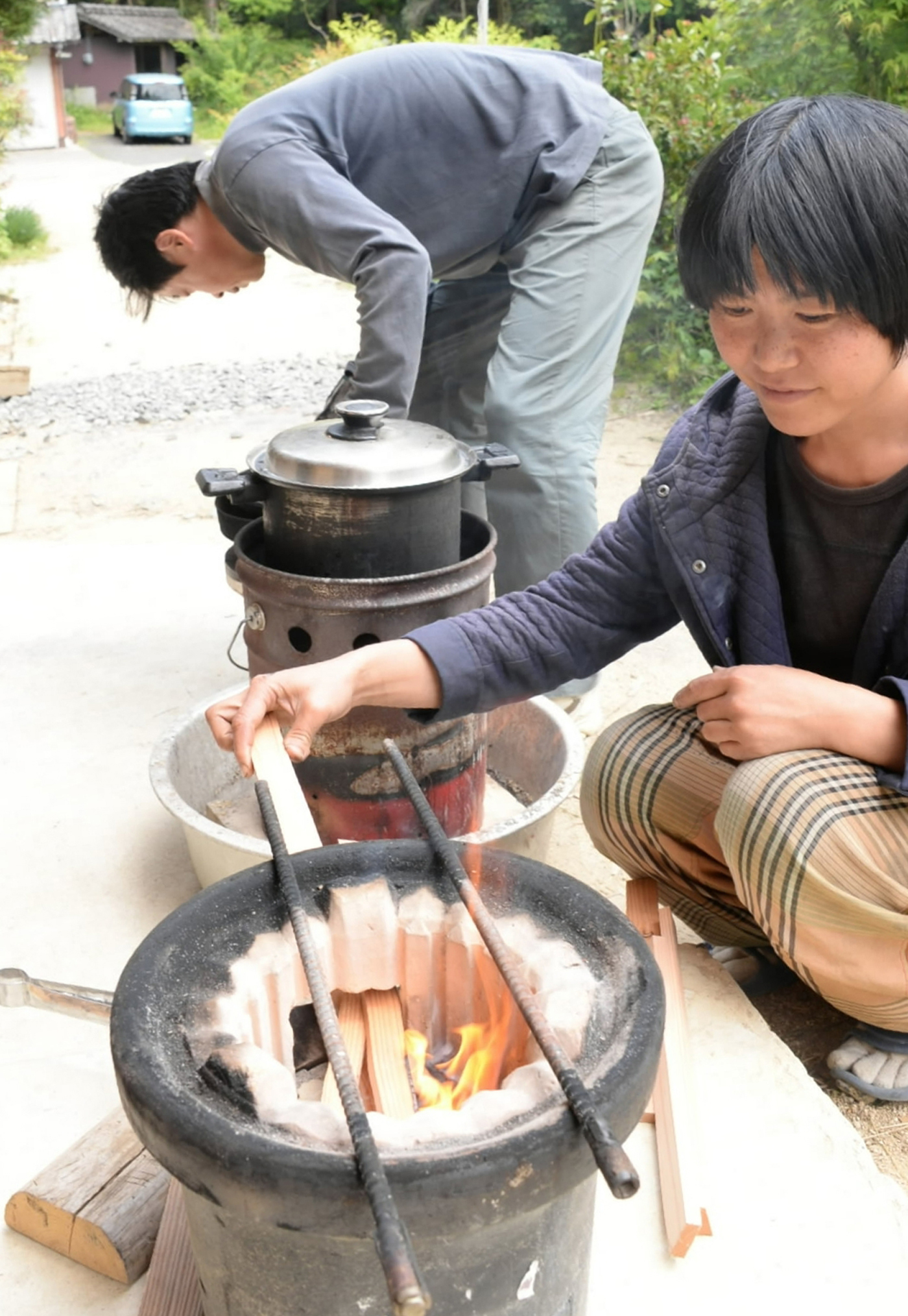 The Shimono family does not own a refrigerator, rice cooker or stove. Instead, Tomoko uses a nukakudo, a portable stove often used for camping, to cook rice by burning Japanese cedar tree leaves and chaff.