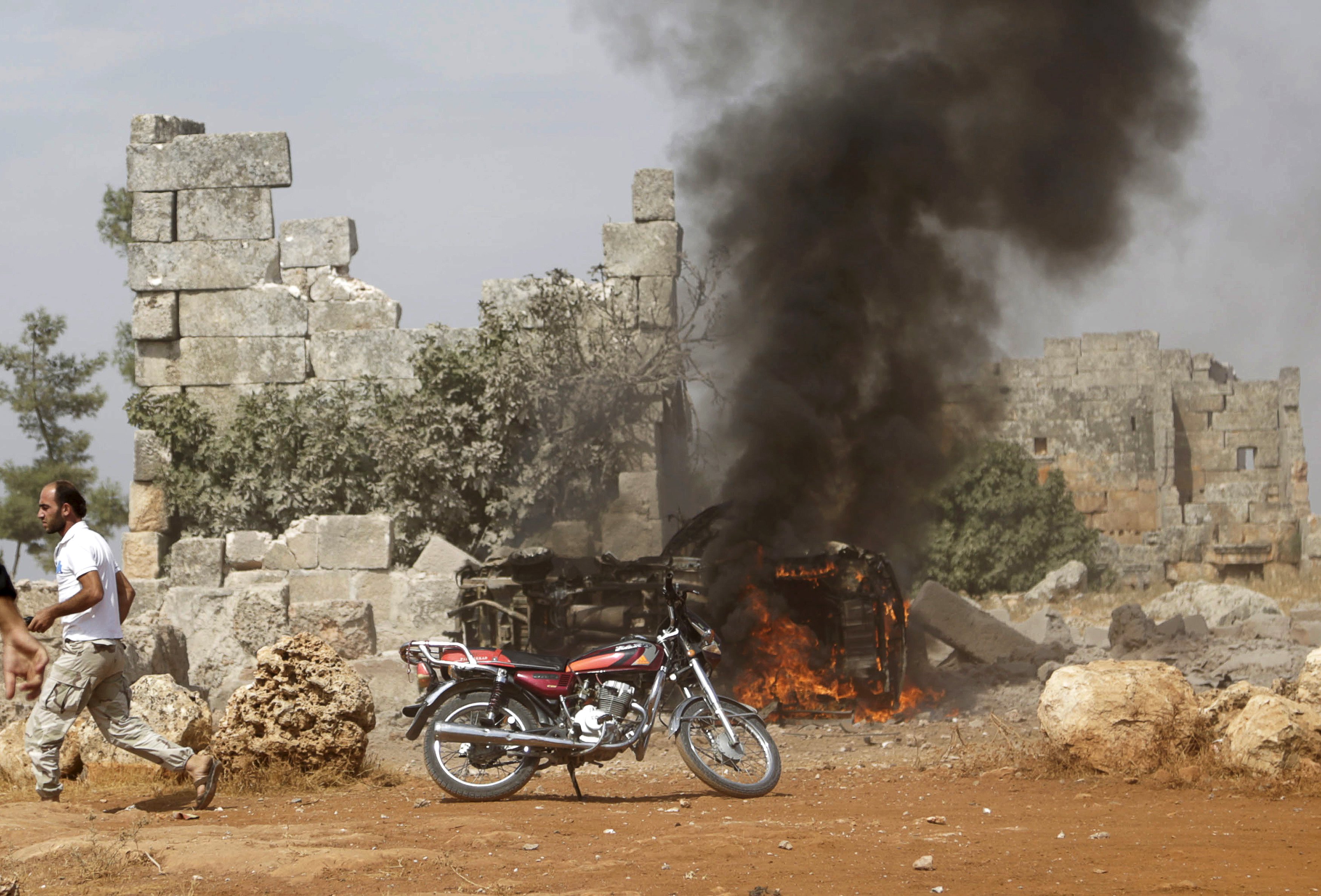 But when asked whether the United States would do anything to protect them from Russian airstrikes, he told reporters: "I think the burden here is on Russia."