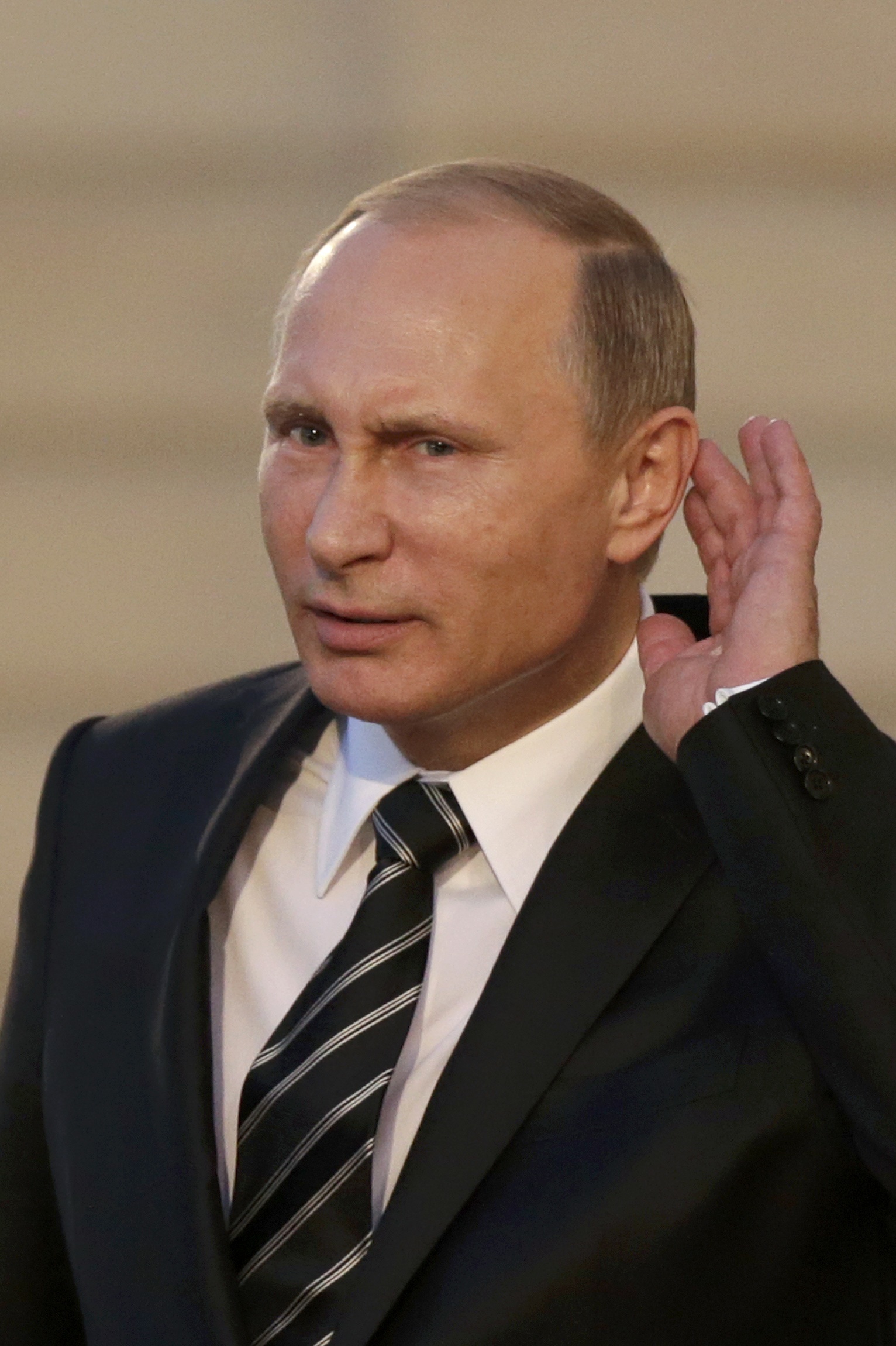 At a White House news conference, Obama frequently assailed Russian President Vladimir Putin, whom he accused of acting out of a position of weakness to defend a crumbling, authoritarian ally.