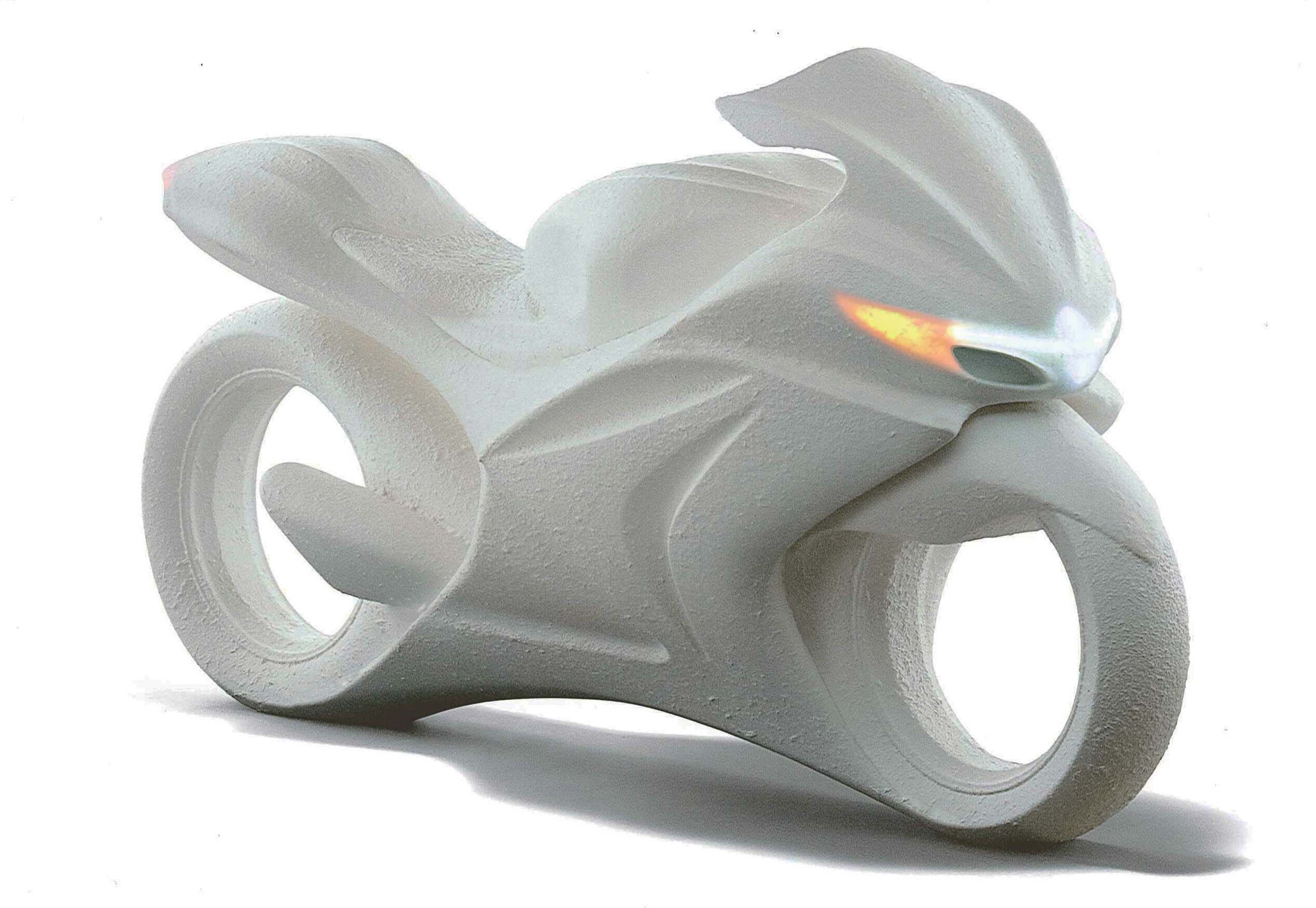 It boasts a light, slim and compact body and futuristic styling and technology, creating hybrid feelings of near future and nostalgia. The fuel tank and seat cowls have panels made from the same wood used in guitars. Muffler and tank cap are decorated with engravings similar to that used for wind instruments.