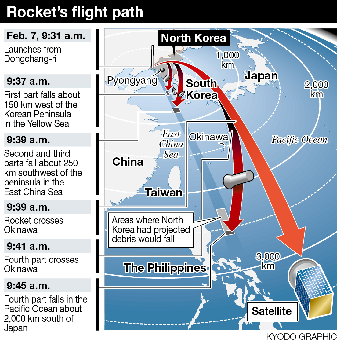 From the launch, the North may have learned more about multi-stage rocket technology, such as how to separate propulsion units and control the projectile's bearing, Nakatani said.