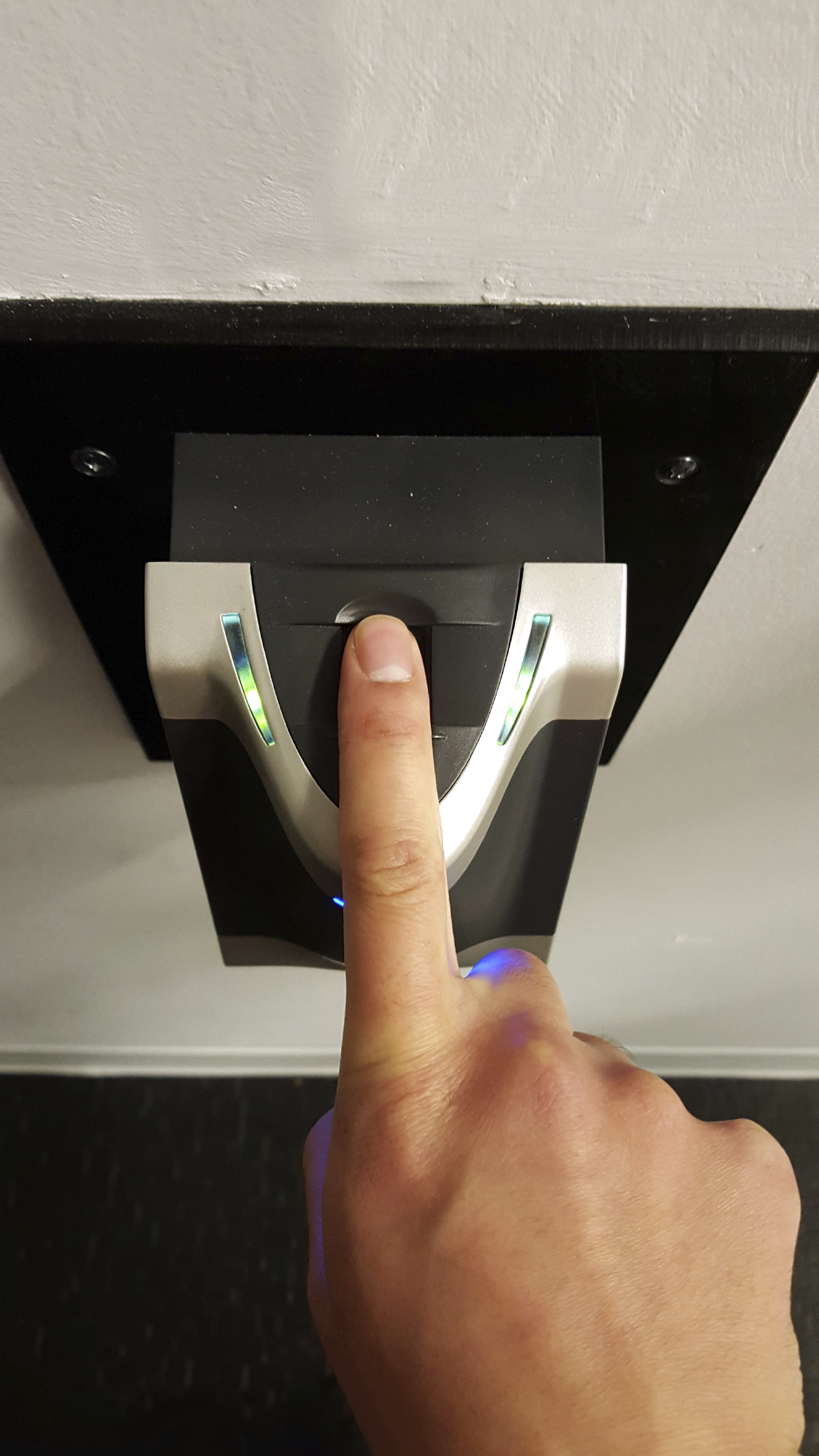 The wheeled cart will be equipped with a camera and monitor as well as a fingerprint reader so people can enter their data into the system as they wait, thereby cutting down on the time each must spend at the counter.