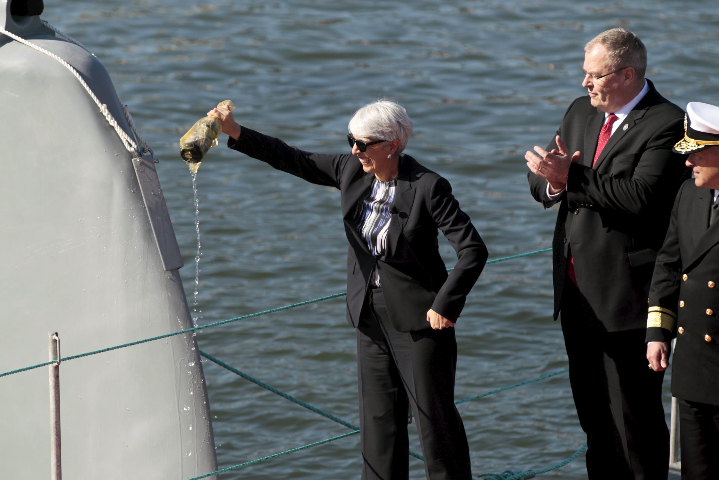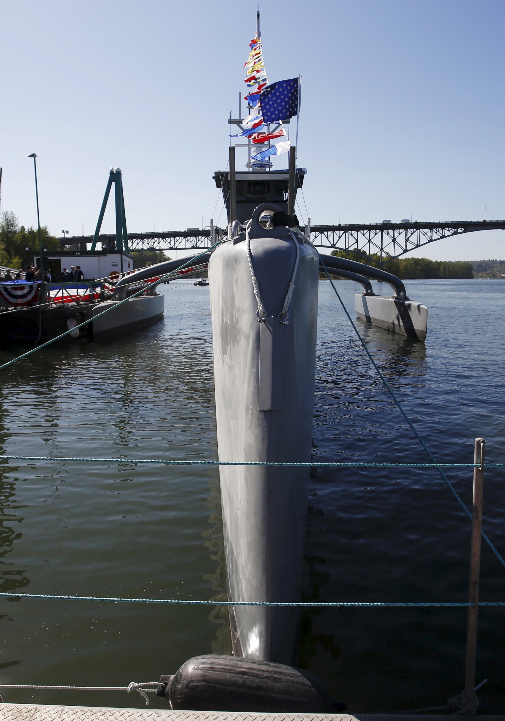 During the christening ceremony in Portland, Work raised the possibility of someday positioning weapons on the Sea Hunter.