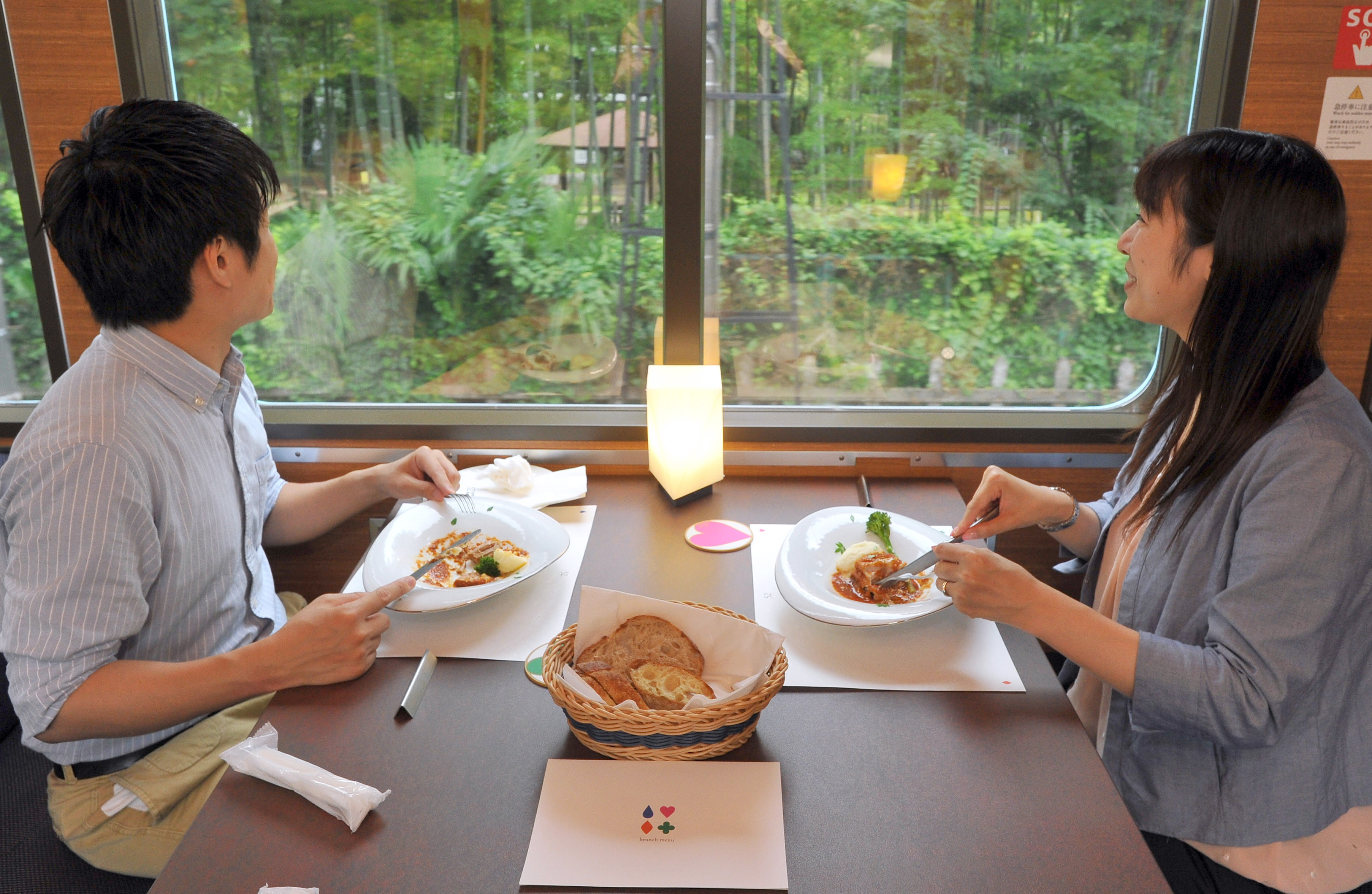 During the three-hour ride — longer than the 80-minute ride on the commuter train — passengers are served a course meal as the four-car train, with galley and dining tables, leaves the hustle and bustle of Tokyo for the rural greenery of Seibu's home prefecture.