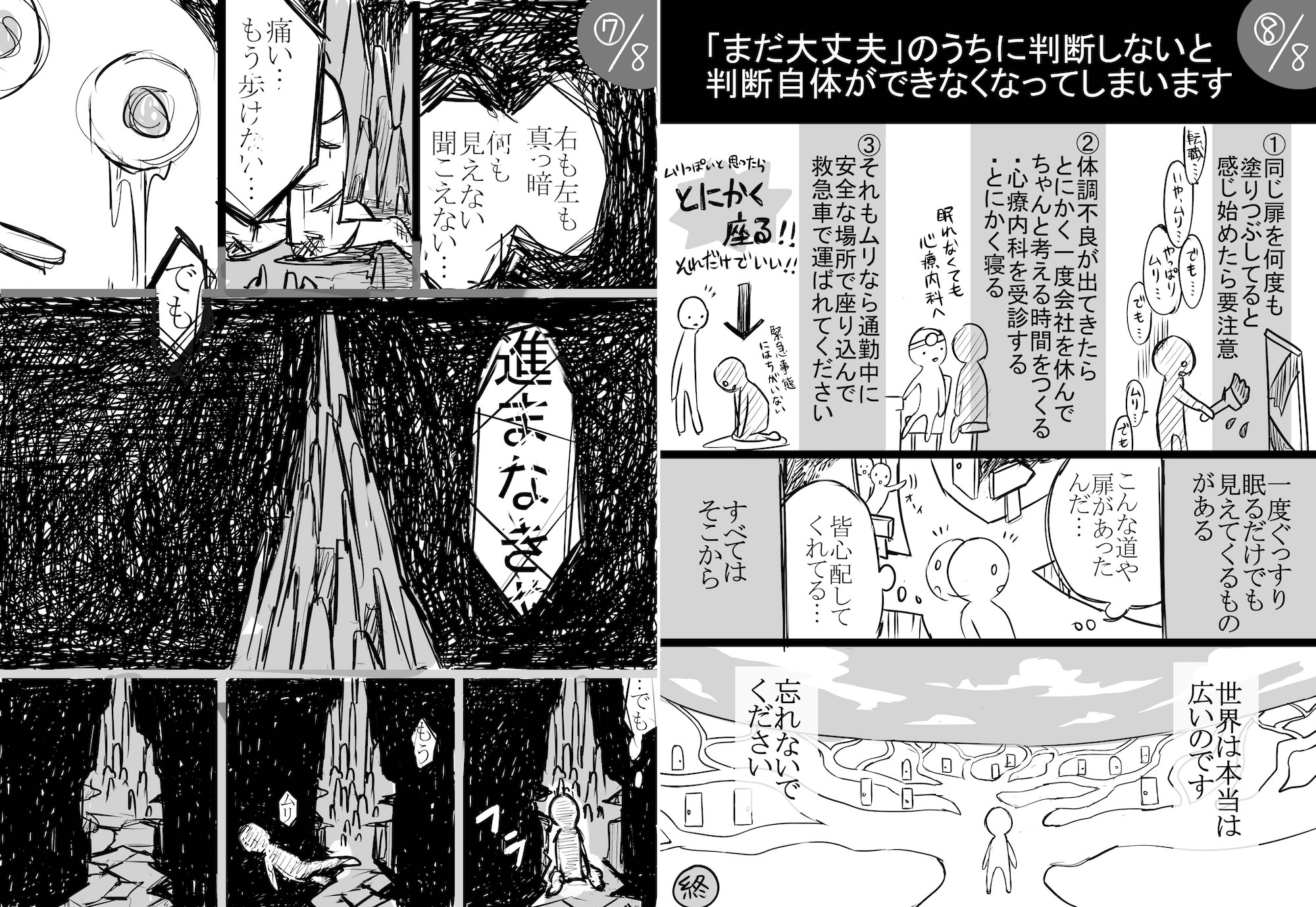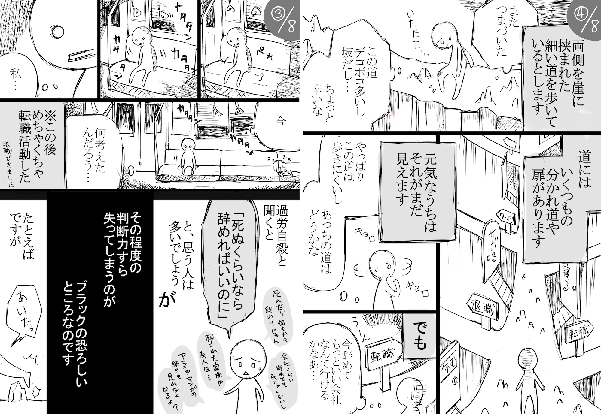 The author, an illustrator who goes by the name Kona Shiomachi, says that when people are overworked, they aren't capable of making rational decisions, including on whether to change jobs, and embark on a vicious circle of negative thinking that, in some cases, leads to suicide.