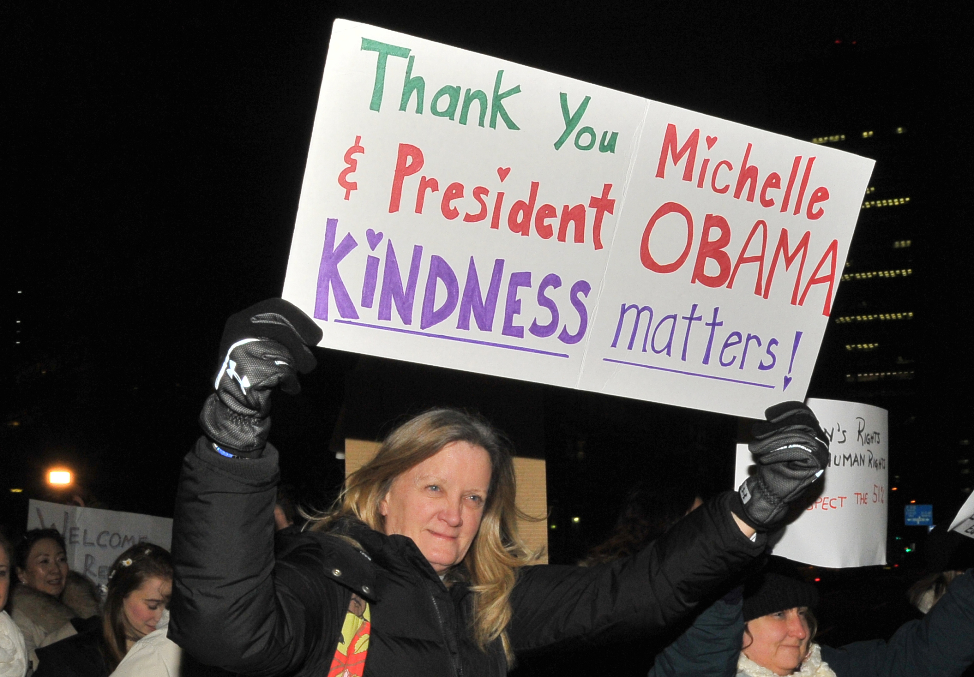 Ahead of the presidential inauguration of Donald Trump in America, members of Democrats Abroad Japan marched Friday evening to express appreciation to outgoing President Barack Obama.