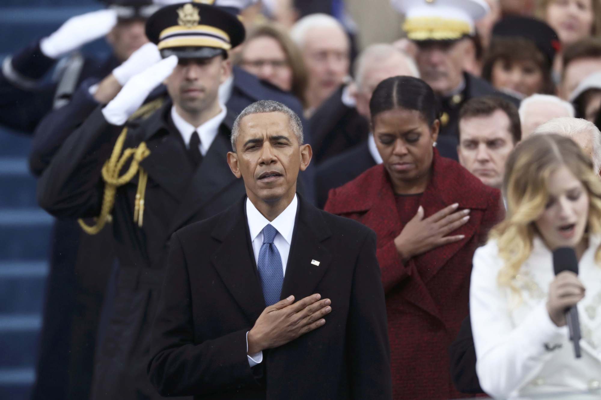 With Obama and three other former presidents sitting nearby, Trump accused previous U.S. administrations of enriching Washington at the expense of struggling families.
