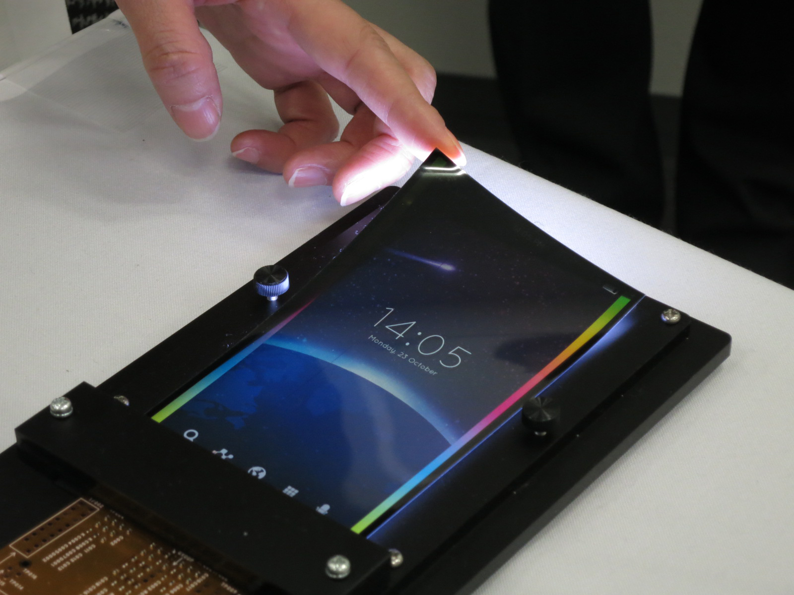 "By using plastic, the display has become flexible, which means it can be bent or folded," said Takimoto.