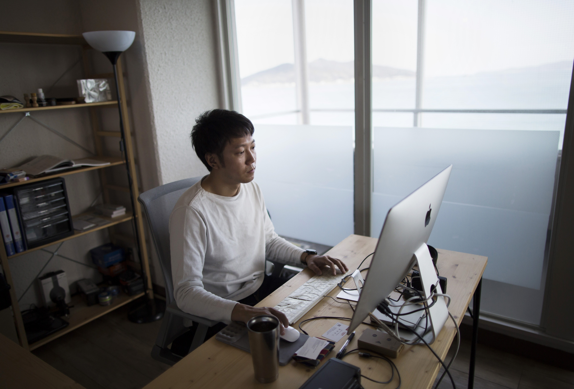 From the fifth-floor office of his internet startup, Kazz Watabe can see the sea bass jump in the bay as he works on his fishing website to the sound of jazz and the waves washing on the beach below.