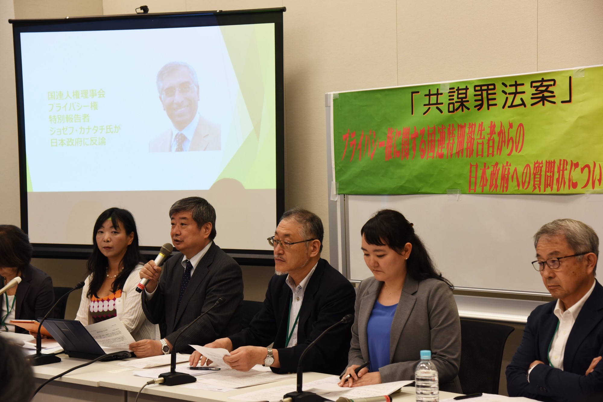 The government should take seriously a stern rebuke issued last week by Joe Cannataci, U.N. Special Rapporteur on the right to privacy, and rethink a hasty passage of the state-backed bill that would pave the way for a police crackdown on preparations for crimes — potentially at the expense of individual rights — opposition lawmakers told the Lower House plenary session in a last-ditch protest of the vote.