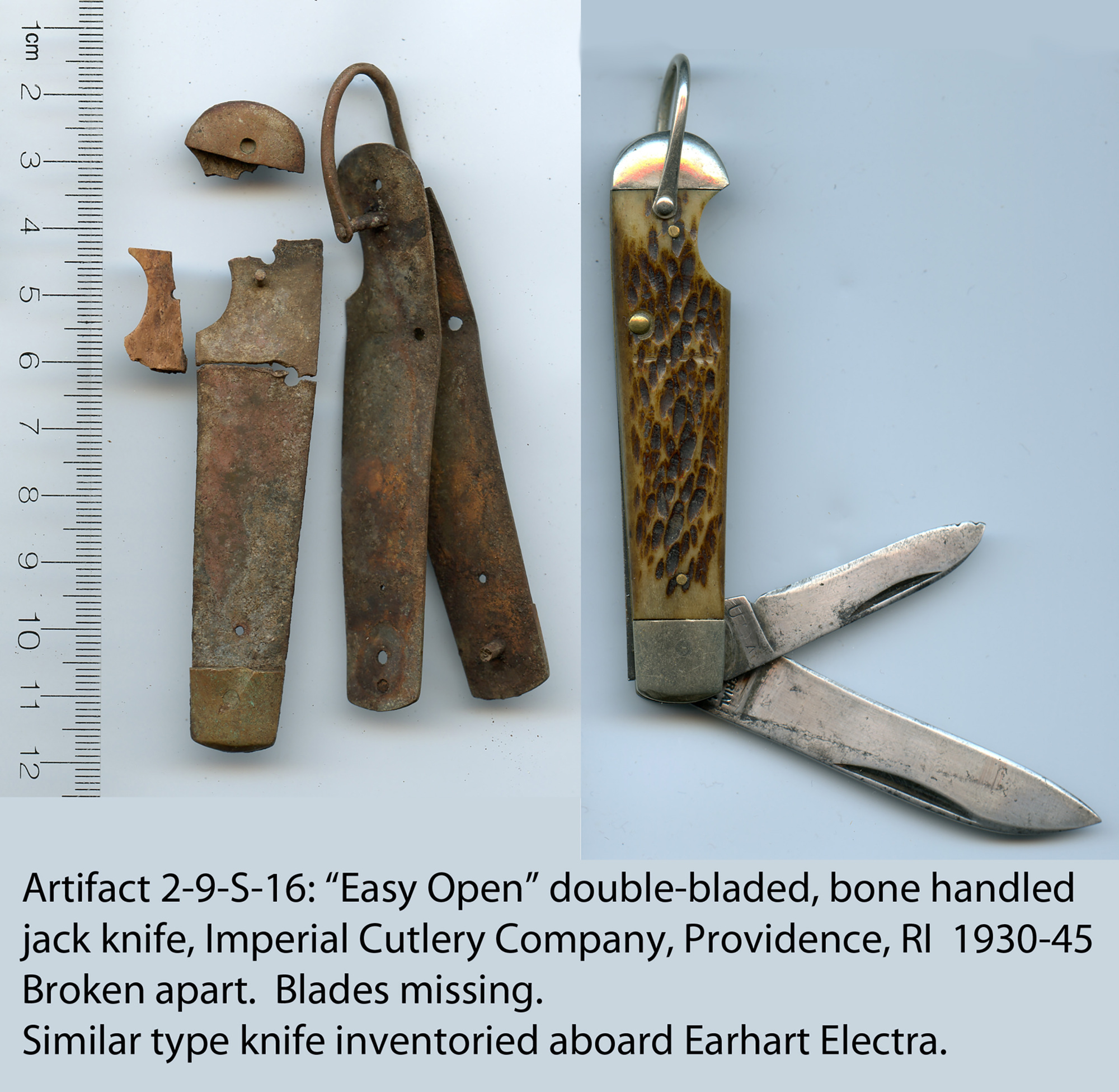 Subsequent searches on the atoll have turned up interesting artifacts, including a penknife purportedly identical to one Earhart had onboard the Electra and pieces of aircraft skin, possibly from an Electra E10.