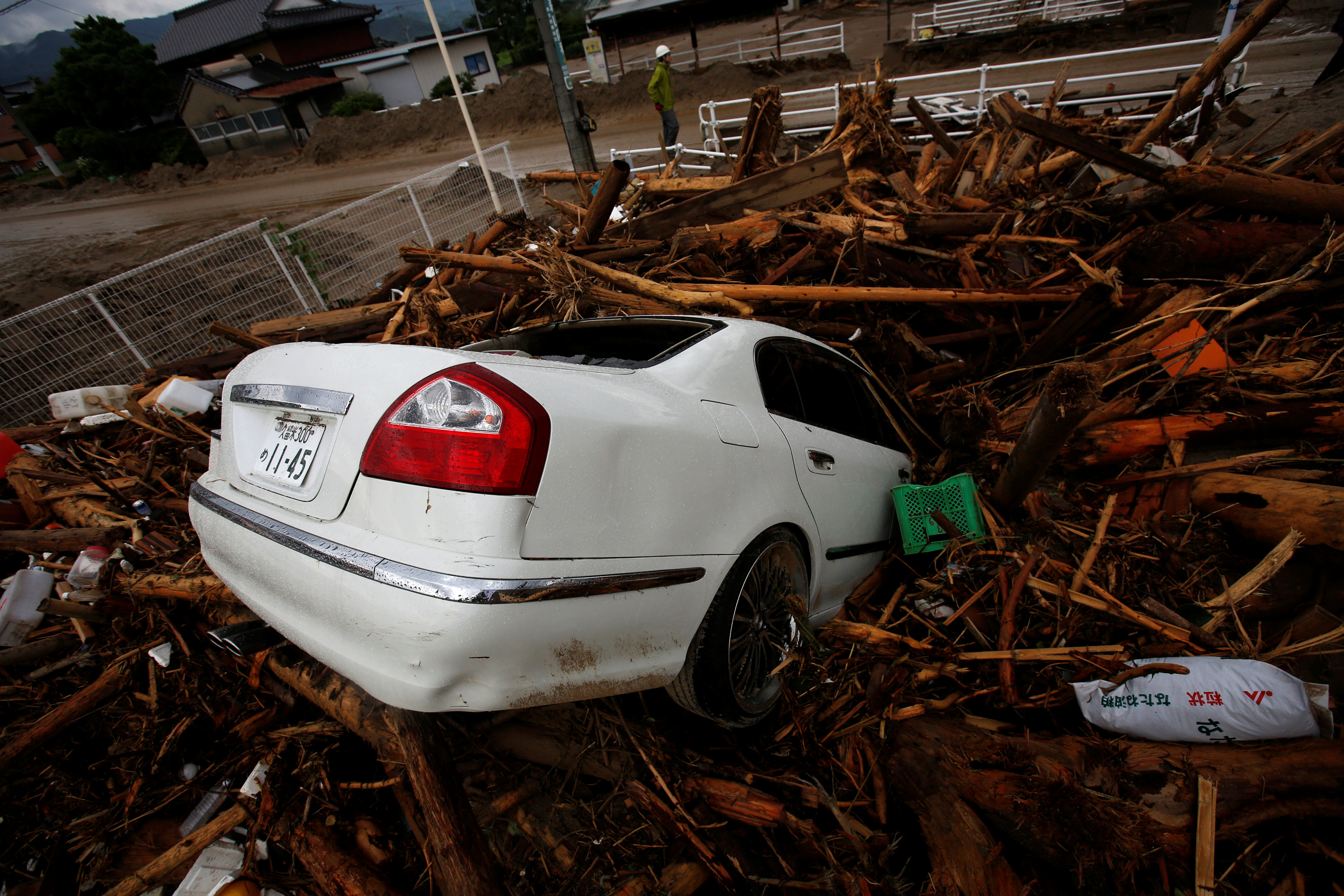 They are trying to restore access to residents in isolated parts of Toho. In Asakura, one of the areas hardest hit, work to remove mud and trees from roads continued in a bid to reconnect isolated areas.