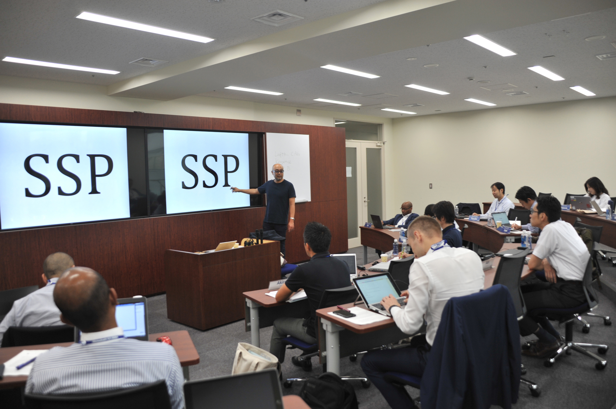 D: It's very challenging, but I would say more rewarding. When I look back at the materials, I always ask myself, "How did I do that?" The video conferencing system was a big help when I was on business trips. I attended the class for two full days from Germany through the conferencing system.