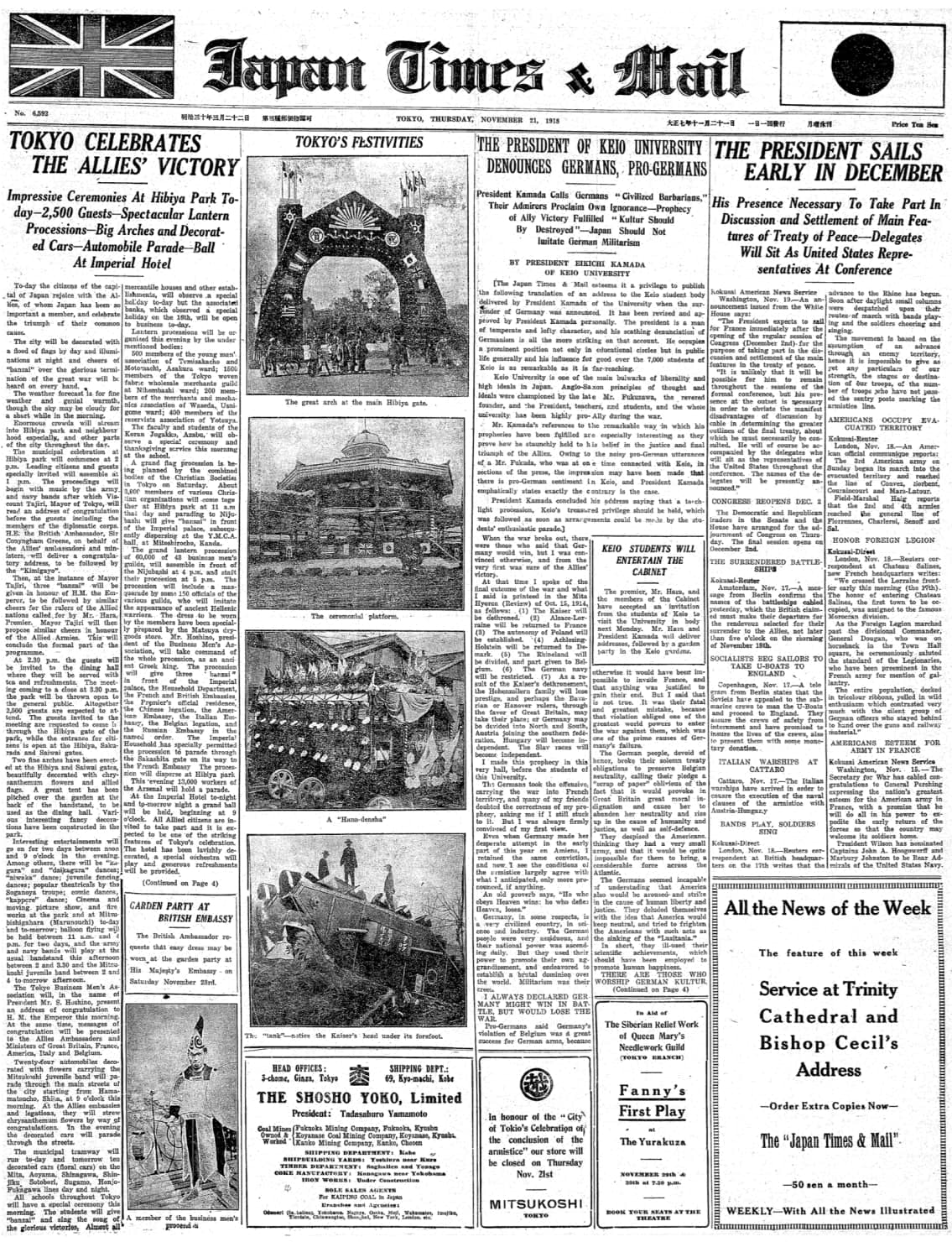 Today the citizens of the capital of Japan rejoice with the Allies, of whom Japan has been so important a member, and celebrate the triumph of their common cause.