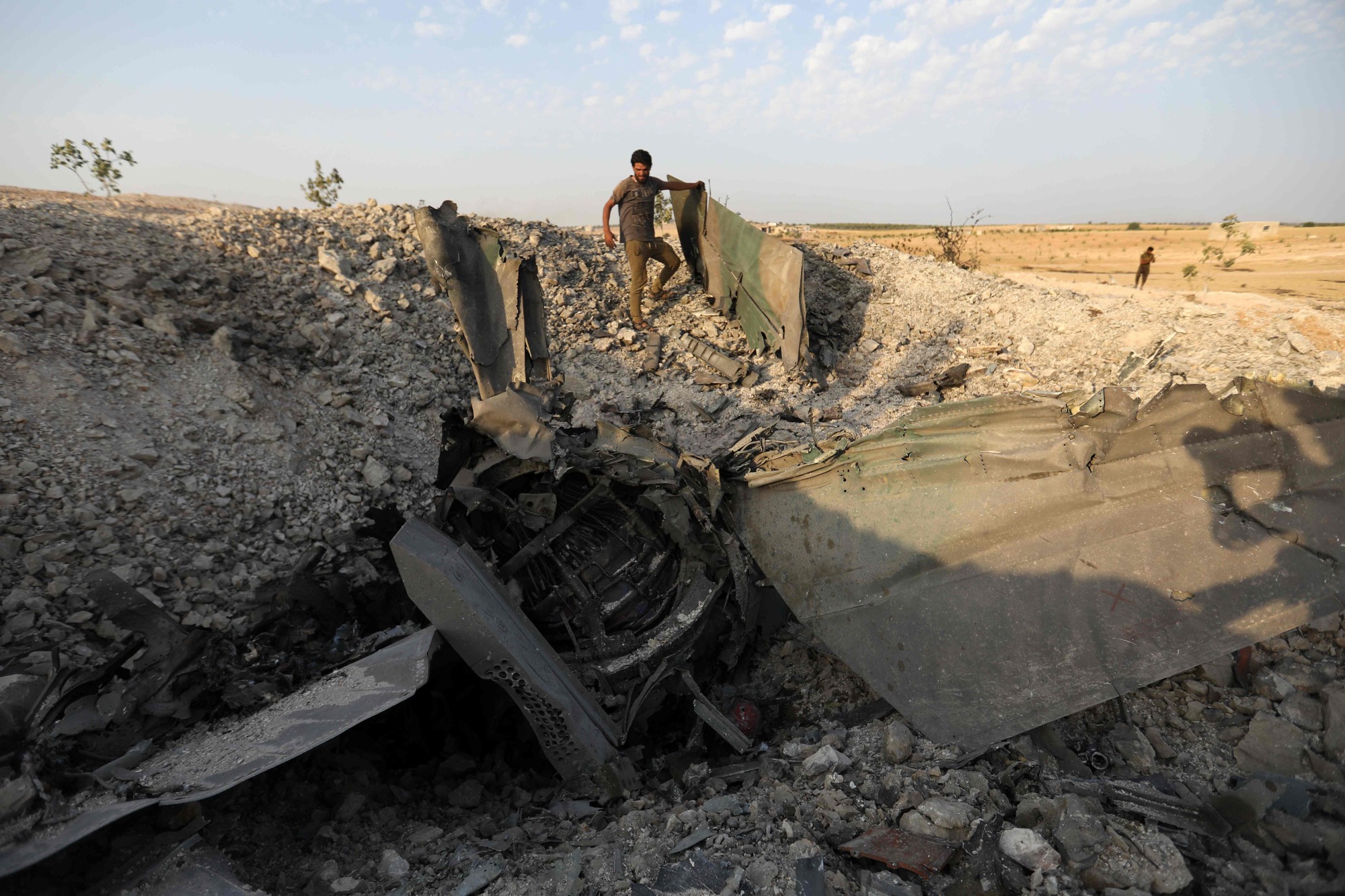 The jet was downed near Khan Sheikhoun, a rebel-held town that was hit by a sarin gas attack in 2017 and is now being targeted in a Russian-backed government offensive.