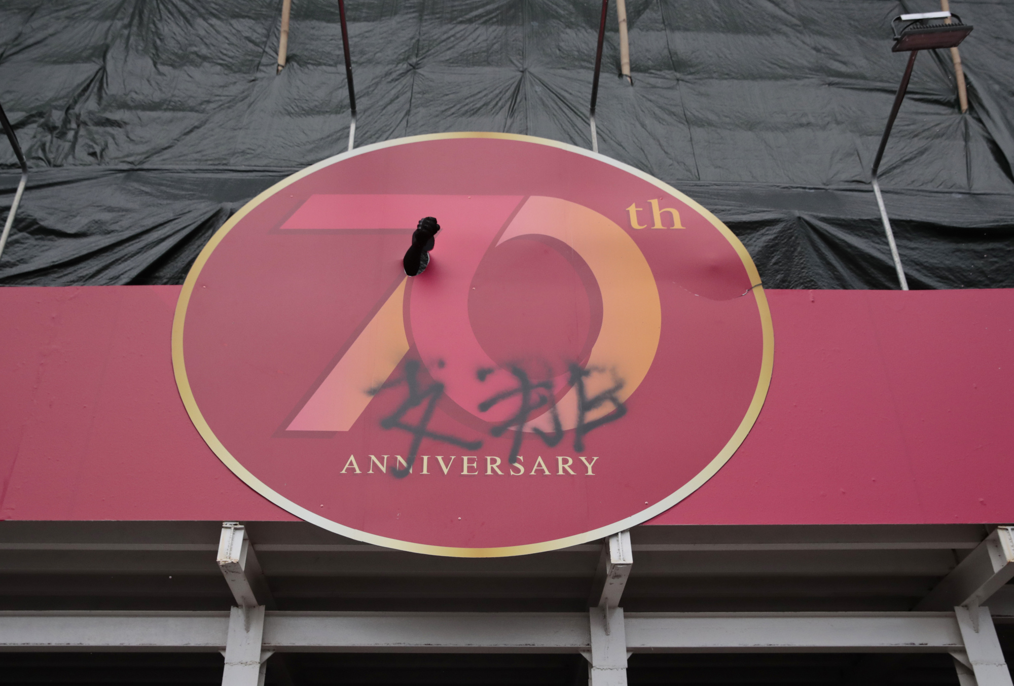 China is eager to quell the unrest before the 70th anniversary of the founding of the People's Republic of China on Oct. 1 but protesters vandalized a long red banner celebrating the event to cheers from the crowd.