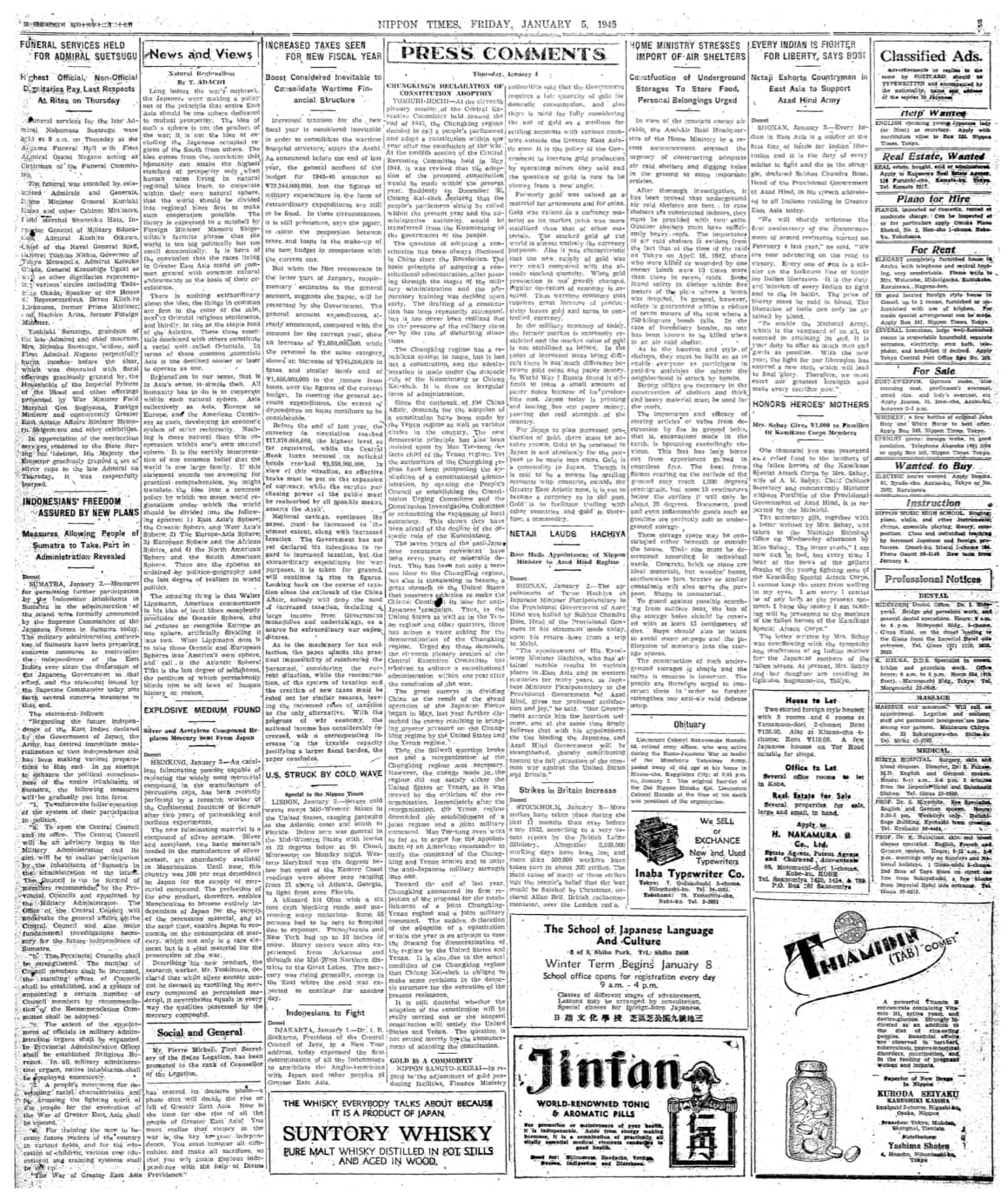 Compiled by Elliott Samuels. In this feature, we delve into The Japan Times' 123-year archive to present a selection of stories from the past. The Japan Times' archive is now available in digital format. For more details, see jtimes.jp/de.