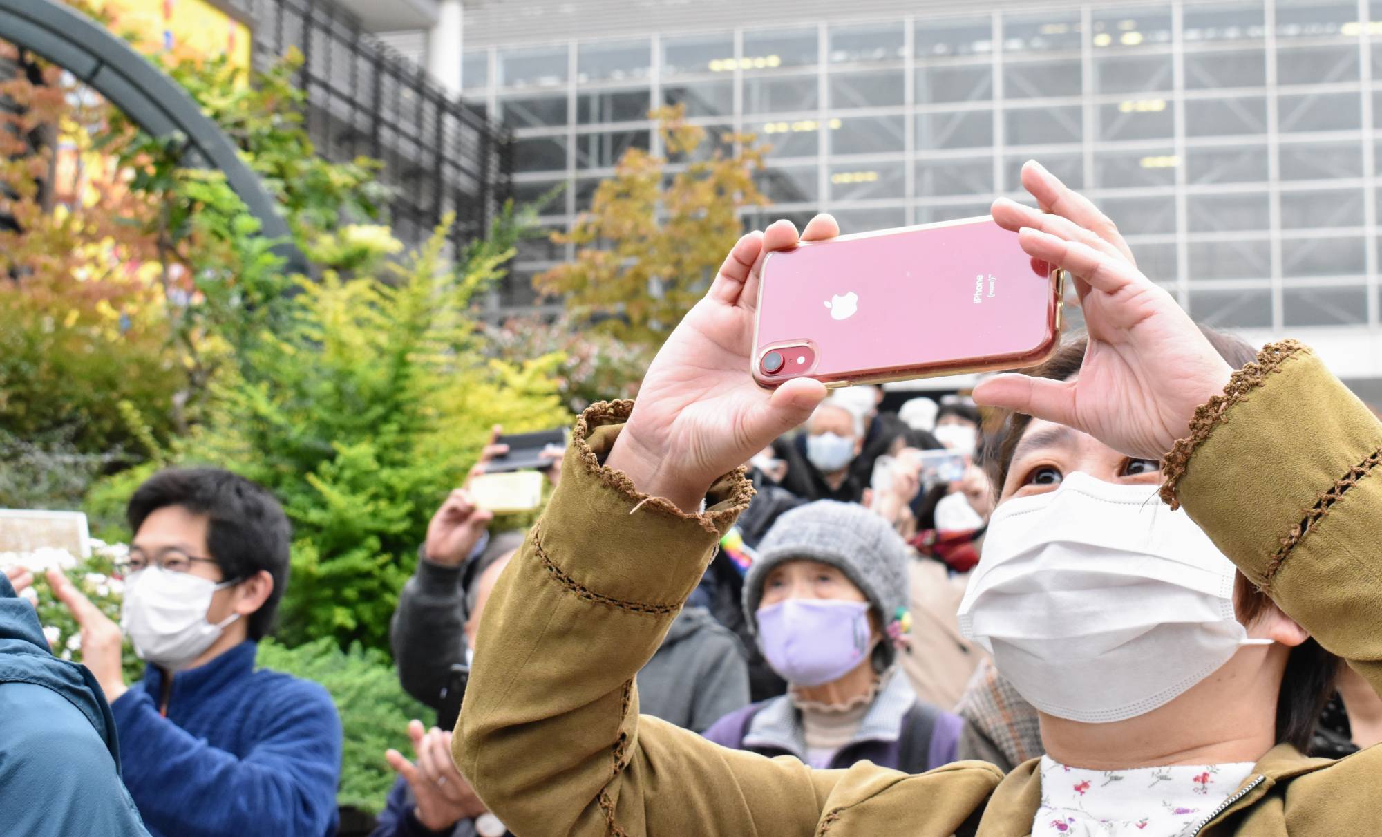 In his speech, Kono enthused about a wide range of topics, from his accomplishments as vaccine czar to his promotion of telework and his belief in renewable energy. Once finished, he stepped down and soon found himself swarmed by enthusiastic fans, fist-bumping his way through the crowd and occasionally stopping to take selfies with them.