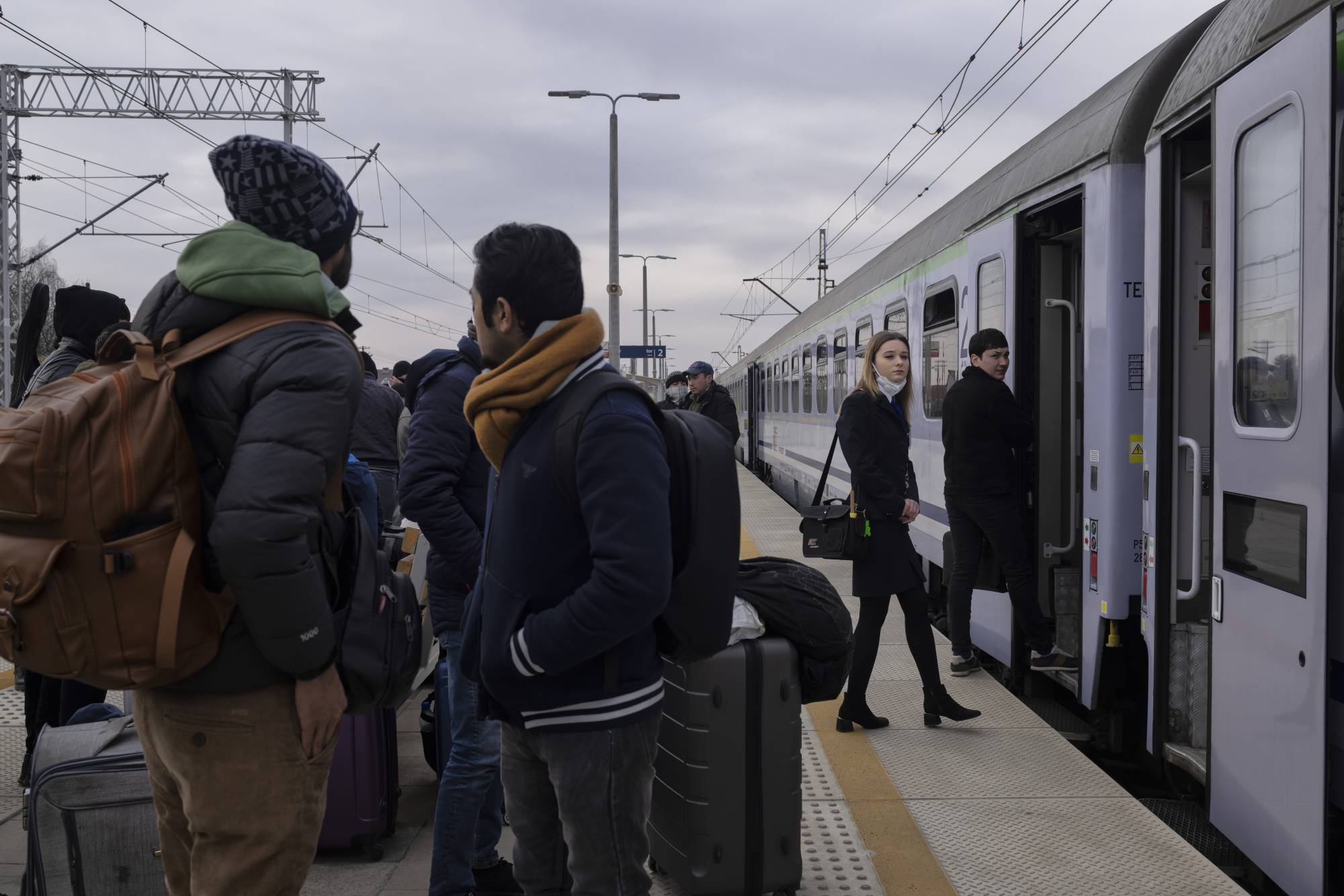 Many families were traveling together. Those who chose to stay inside Ukraine could remain together, but some men were sending their wives and children across the border, unable to join them because of the new law.