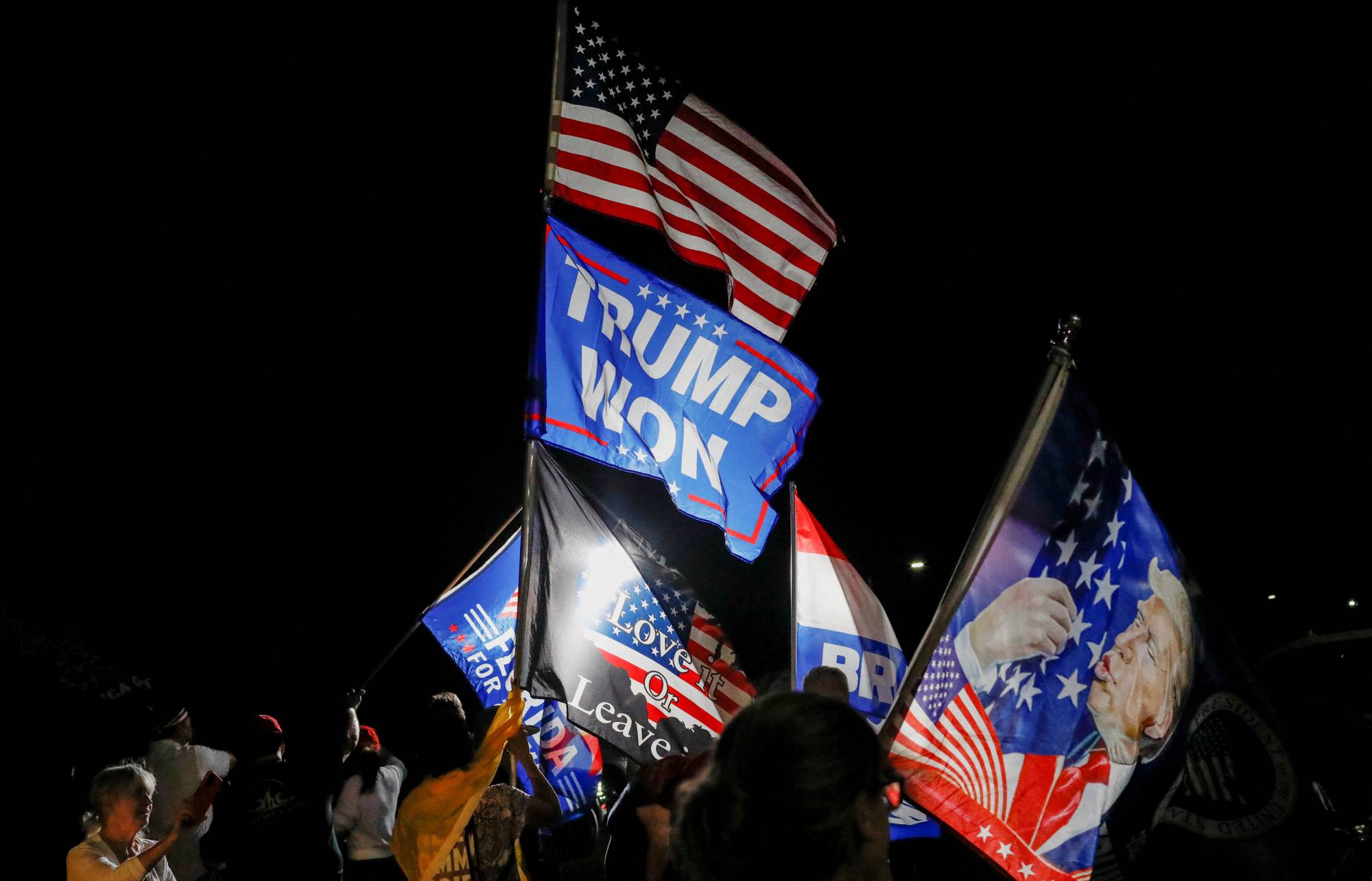 Trump supporters honked their horns and played music from their cars as some waved Trump flags or American flags.