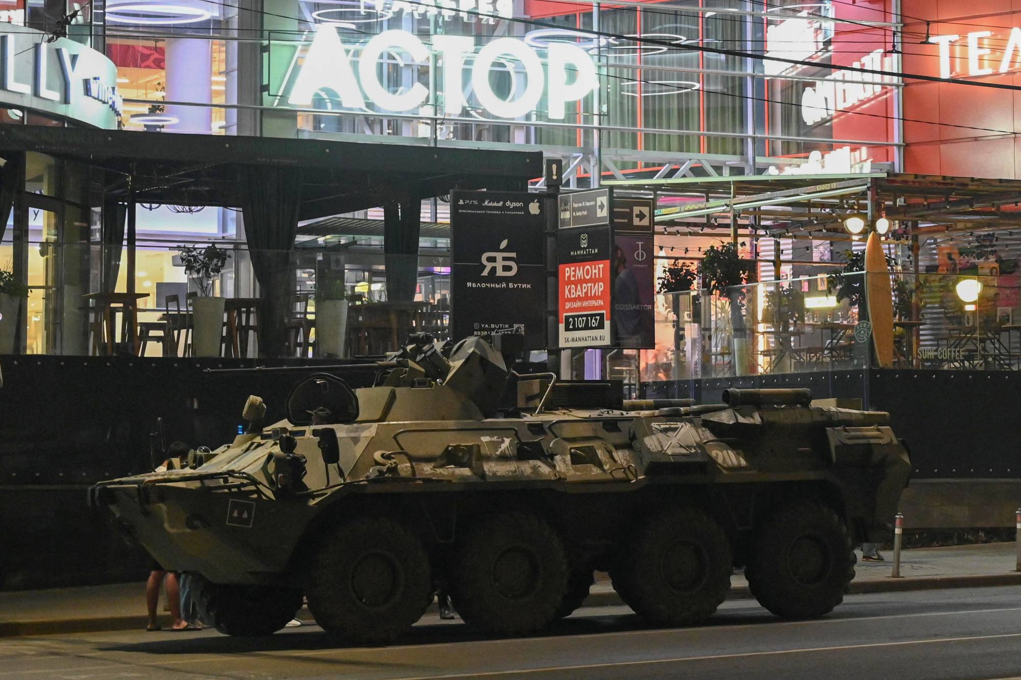 In Rostov, which serves as the main rear logistical hub for Russia's entire invasion force, residents milled about, filming on mobile phones, as Wagner fighters in armored vehicles and huge battle tanks took up positions in the city center.
